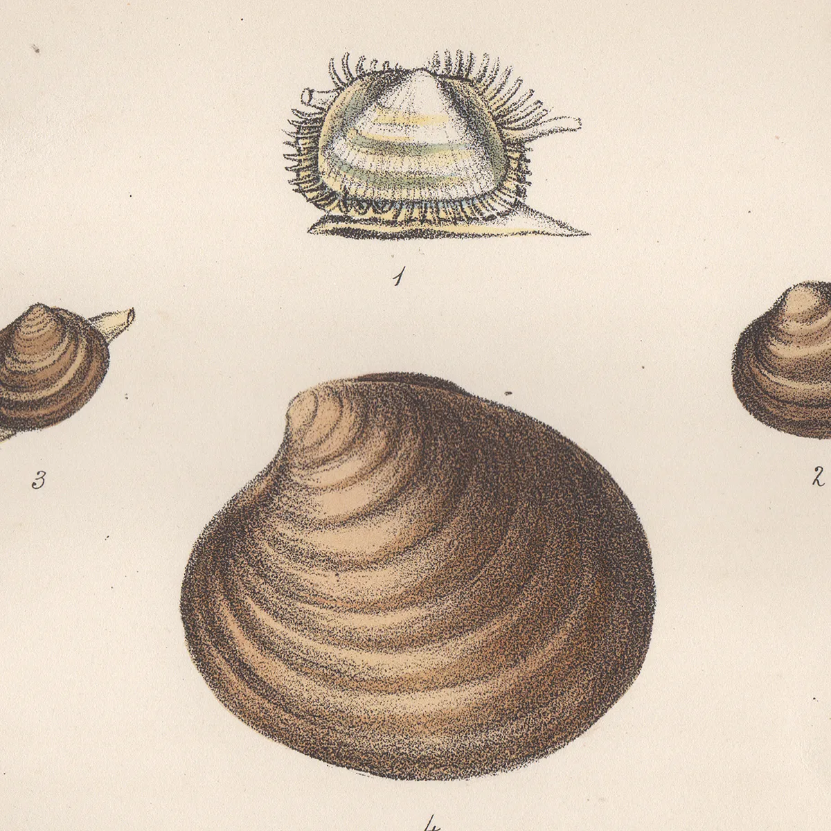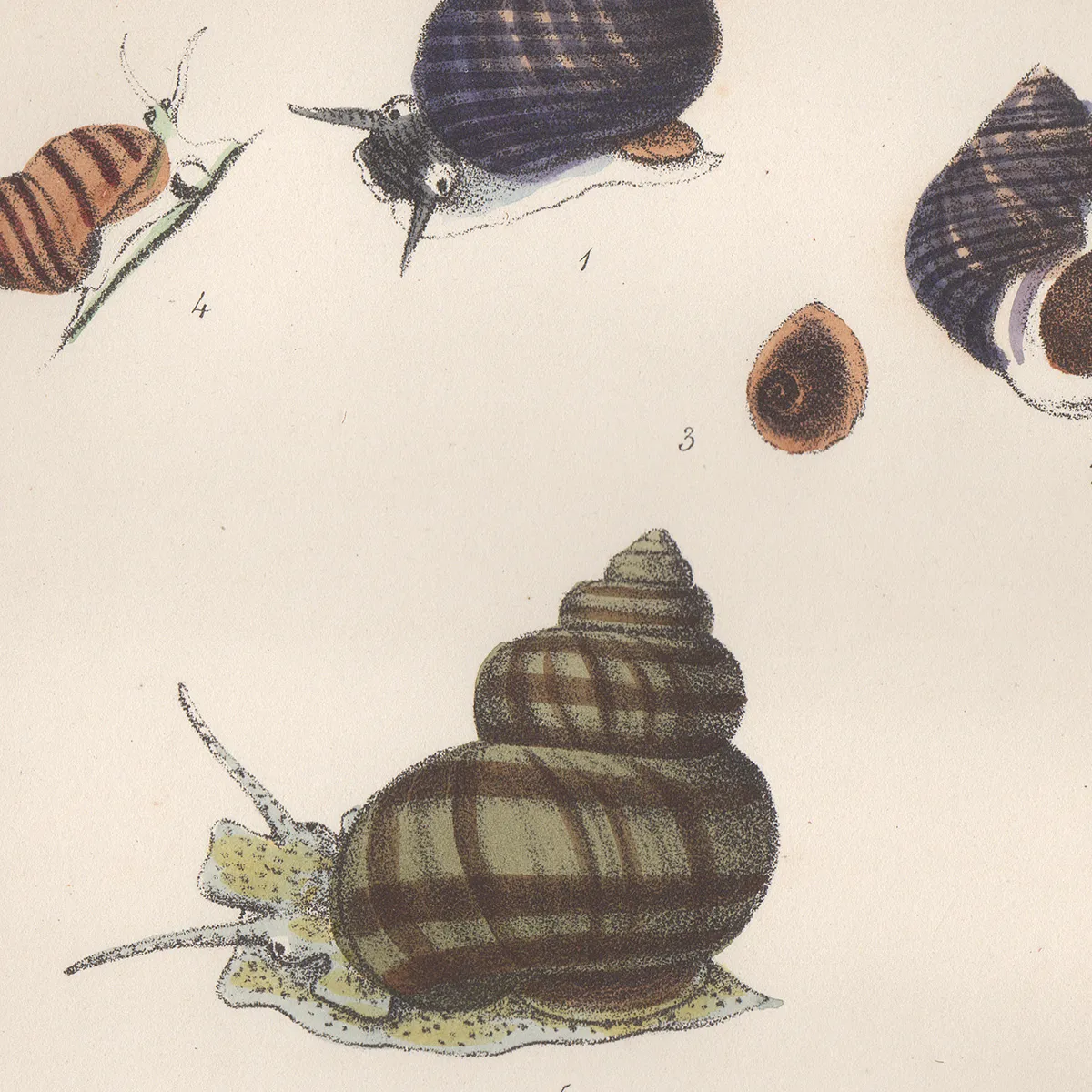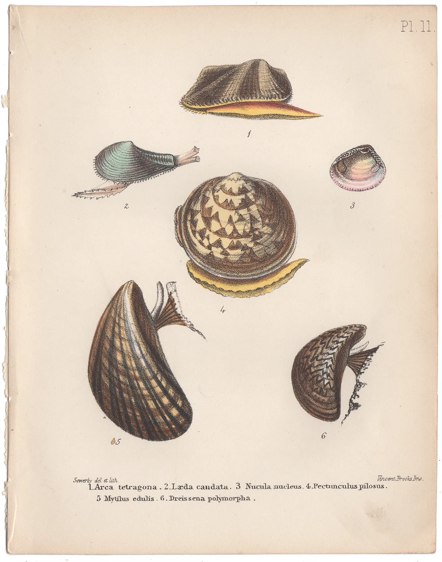 $26.50This original hand-colored lithograph from Popular British Conchology. A familiar history of the molluscs inhabiting the British Isles created in 1854 by James Sowerby.