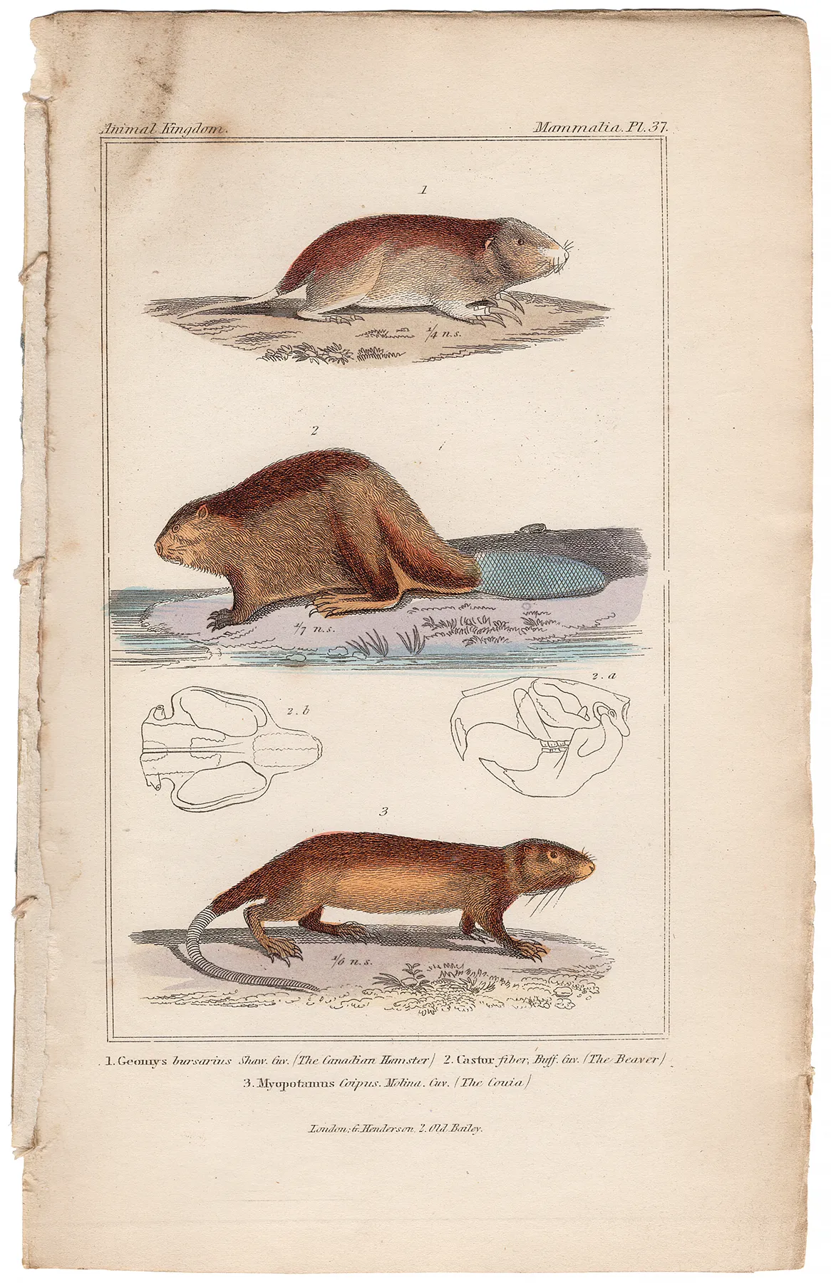 Cuvier Animal Kingdom Mammalia Plate 37 Canadian Hamster, Beaver, Couia