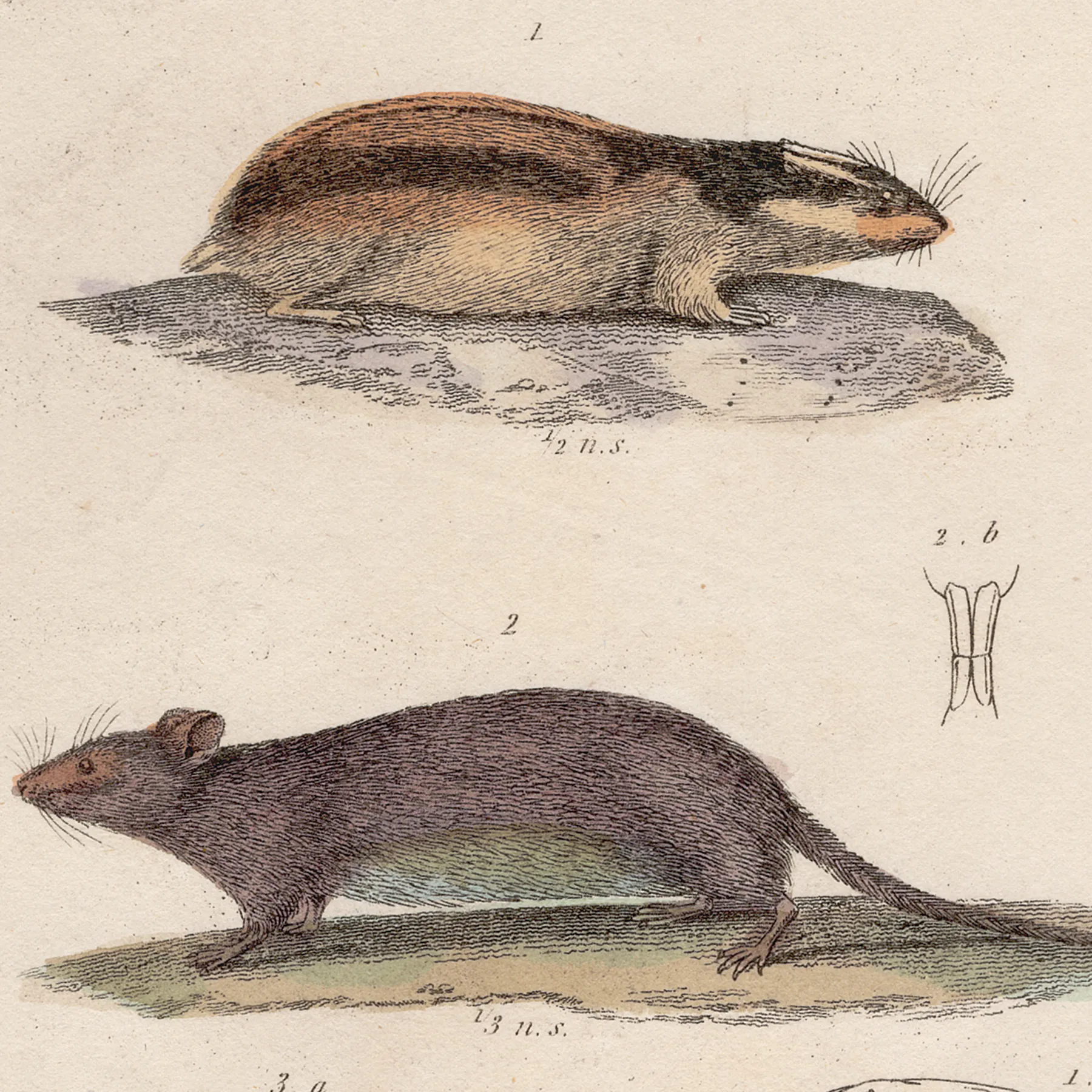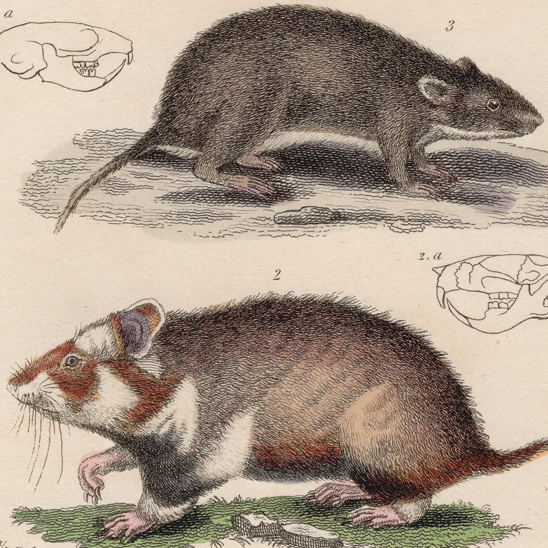Cuvier Animal Kingdom Mammalia Plate 38 Gerbil of the Pyramids, Hamster, Meadow Capagnole