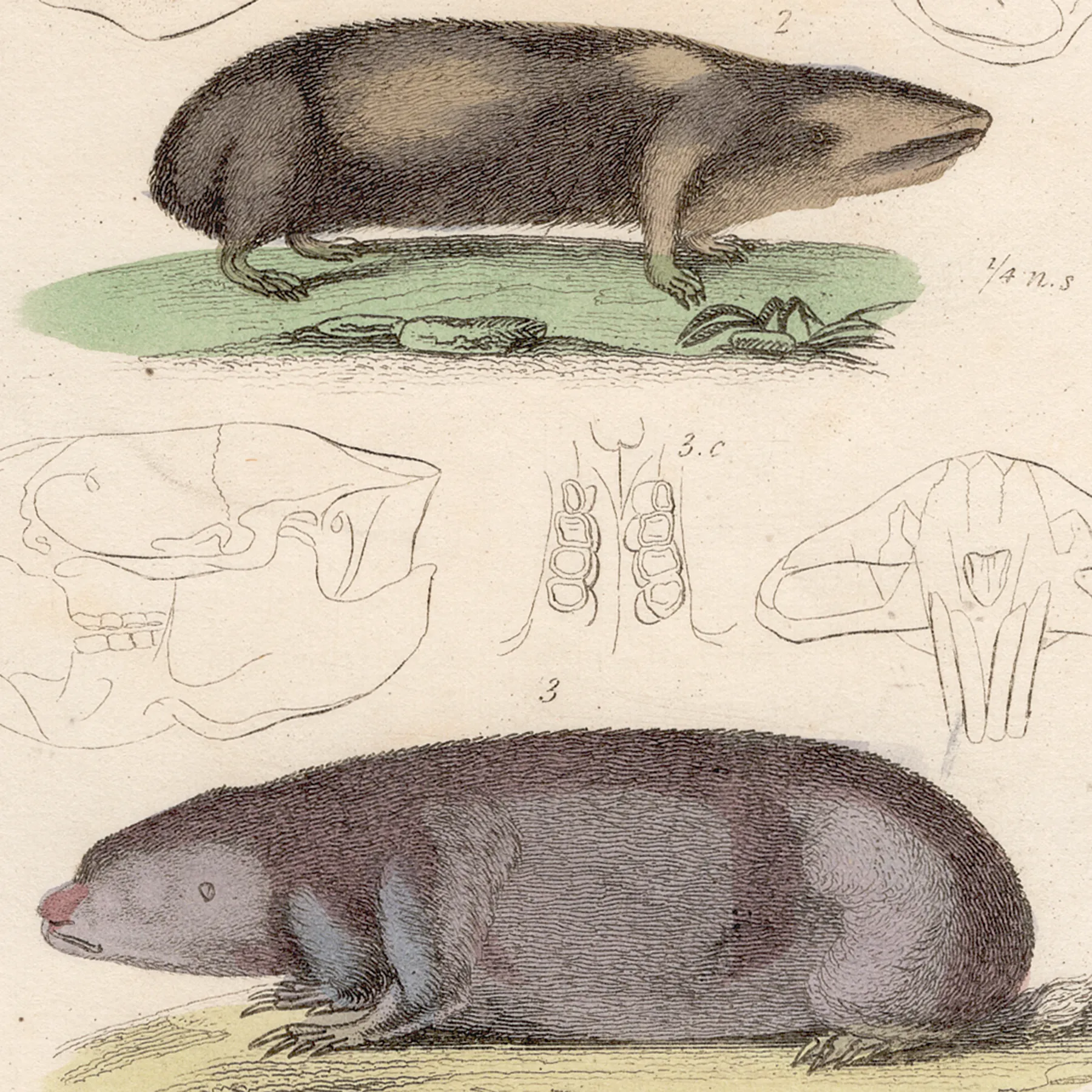 Cuvier Animal Kingdom Mammalia Plate 40 Jumping Hare, Blind Rat Mole, Maritime Rat Mole