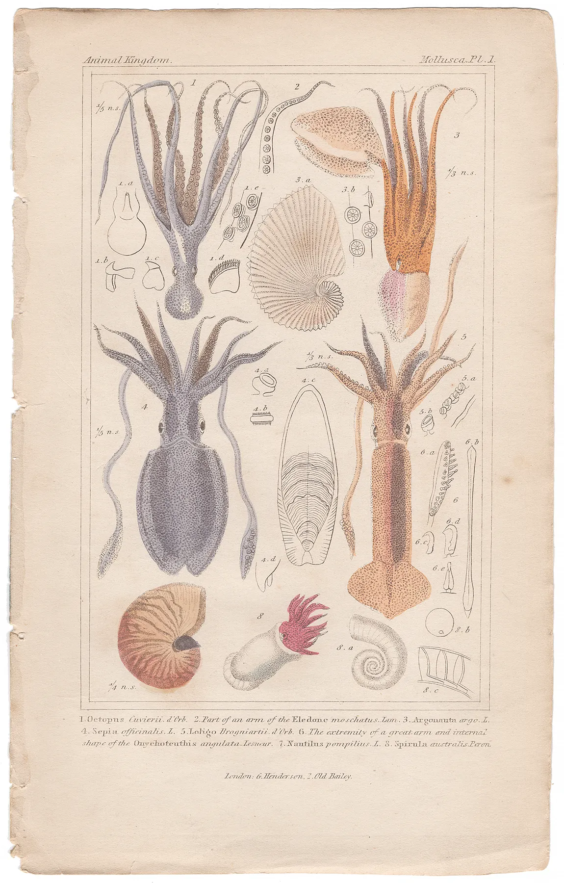 $24.50Cuvier Animal Kingdom Mollusca Plate 2 Cuttlefish