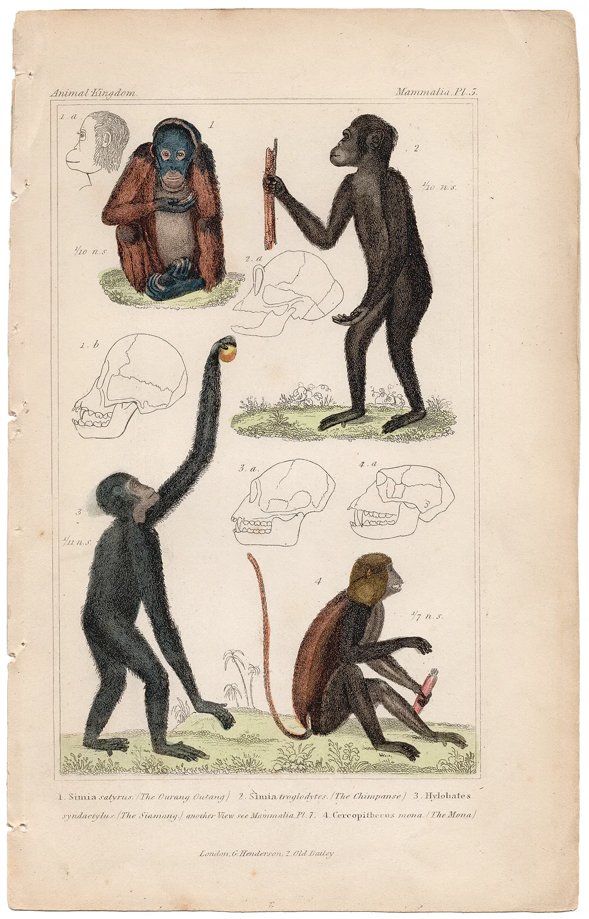 Cuvier Animal Kingdom Mammalia Plate 5 Orangutan, Chimpanse, Mona