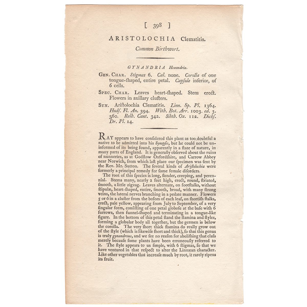 Sowerby Botany Plate 398 Common Birthwort