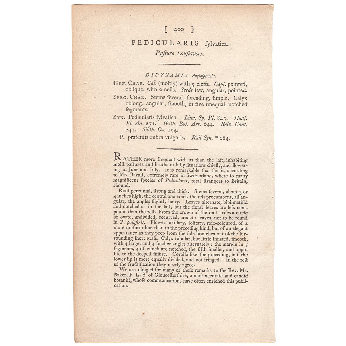 Sowerby Botany Plate 400 Pasture Louse-wort