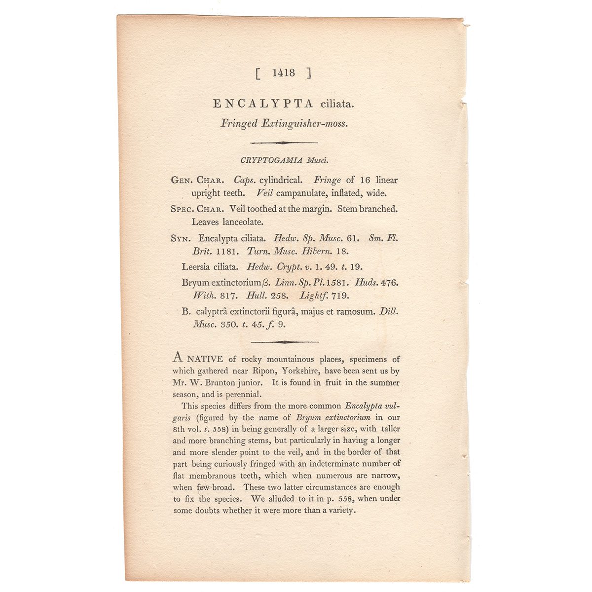 Sowerby Botany Plate 1418 Fringed Extinguisher-moss
