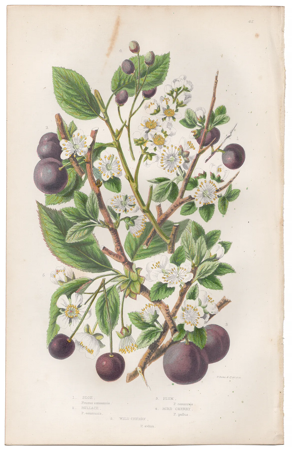 Anne Pratt Plate 65 Sloe, Bullace, Plum, Cherry