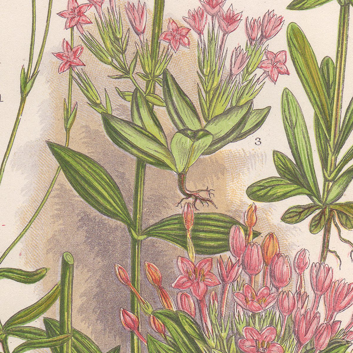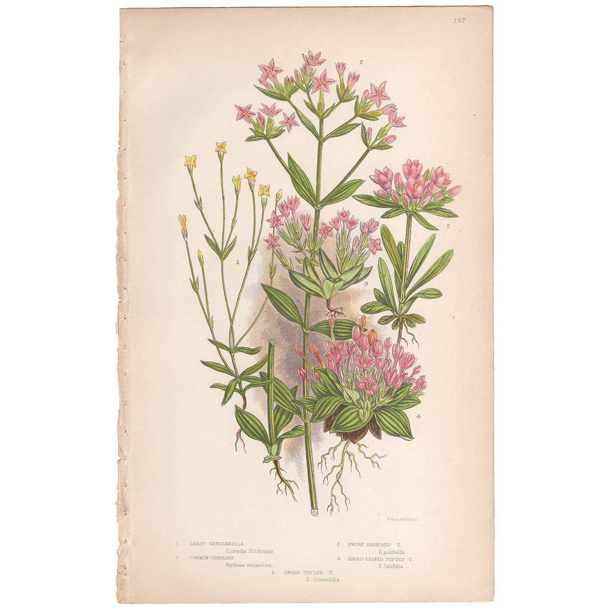 This original chromolithograph from The Flowering Plants and Ferns of Great Britain created 1855–1866 by Anne Pratt illustrates flowering plants. Also available framed.