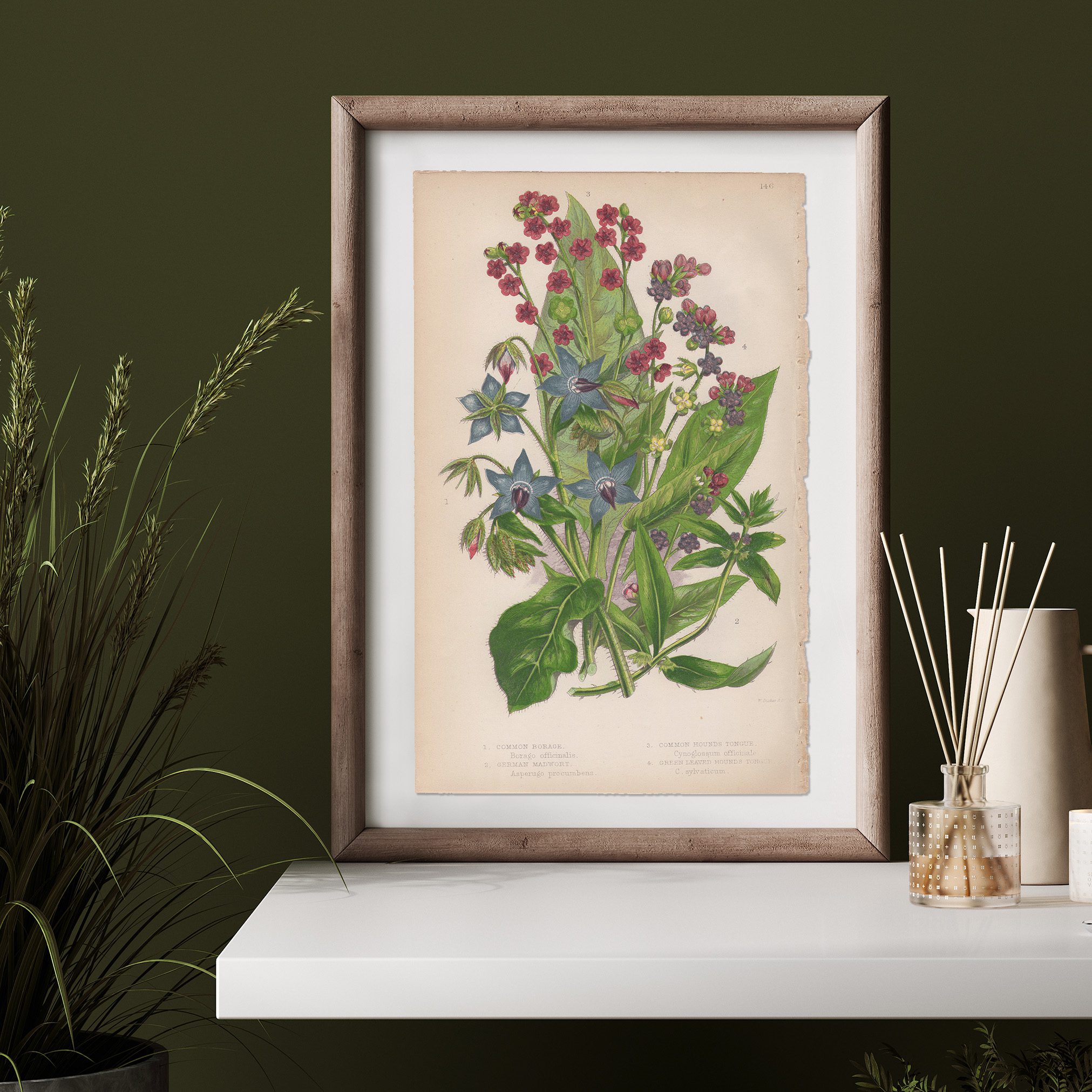 This original chromolithograph from The Flowering Plants and Ferns of Great Britain created 1855–1866 by Anne Pratt illustrates flowering plants. Also available framed.