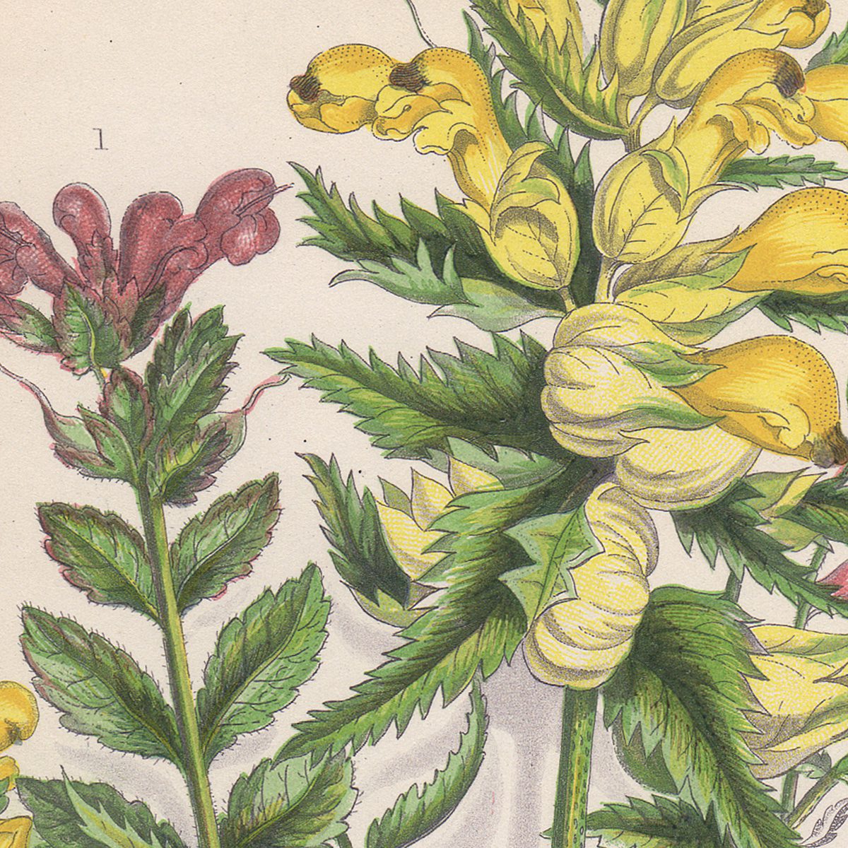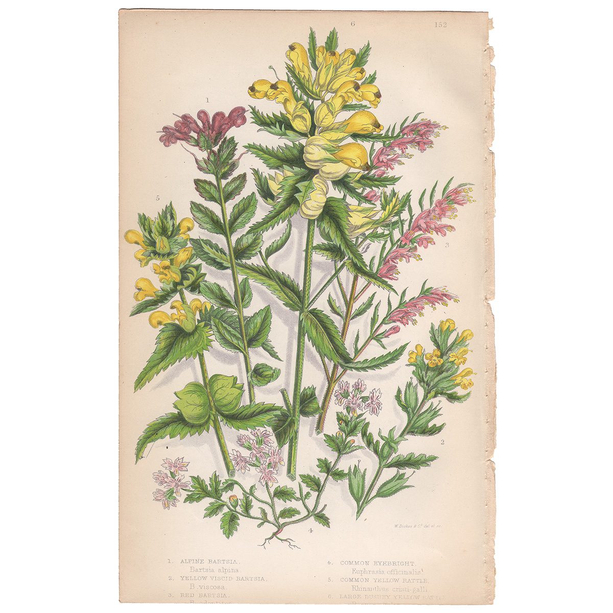 This original chromolithograph from The Flowering Plants and Ferns of Great Britain created 1855–1866 by Anne Pratt illustrates flowering plants. Also available framed.