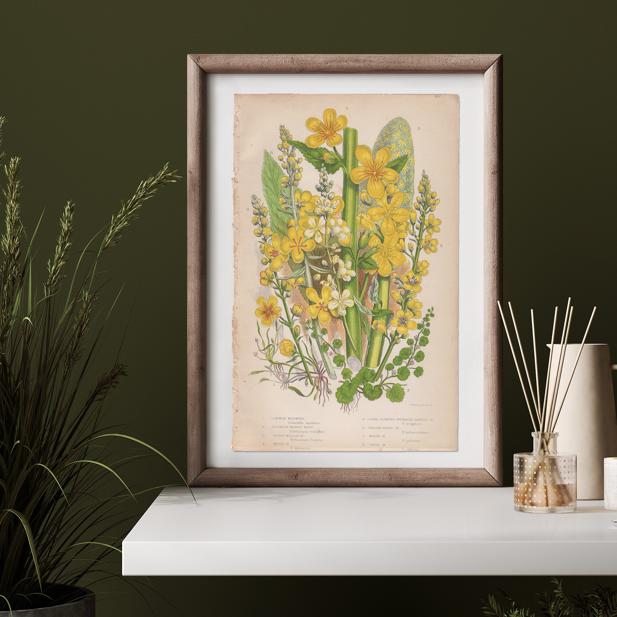This original chromolithograph from The Flowering Plants and Ferns of Great Britain created 1855–1866 by Anne Pratt illustrates flowering plants. Also available framed.