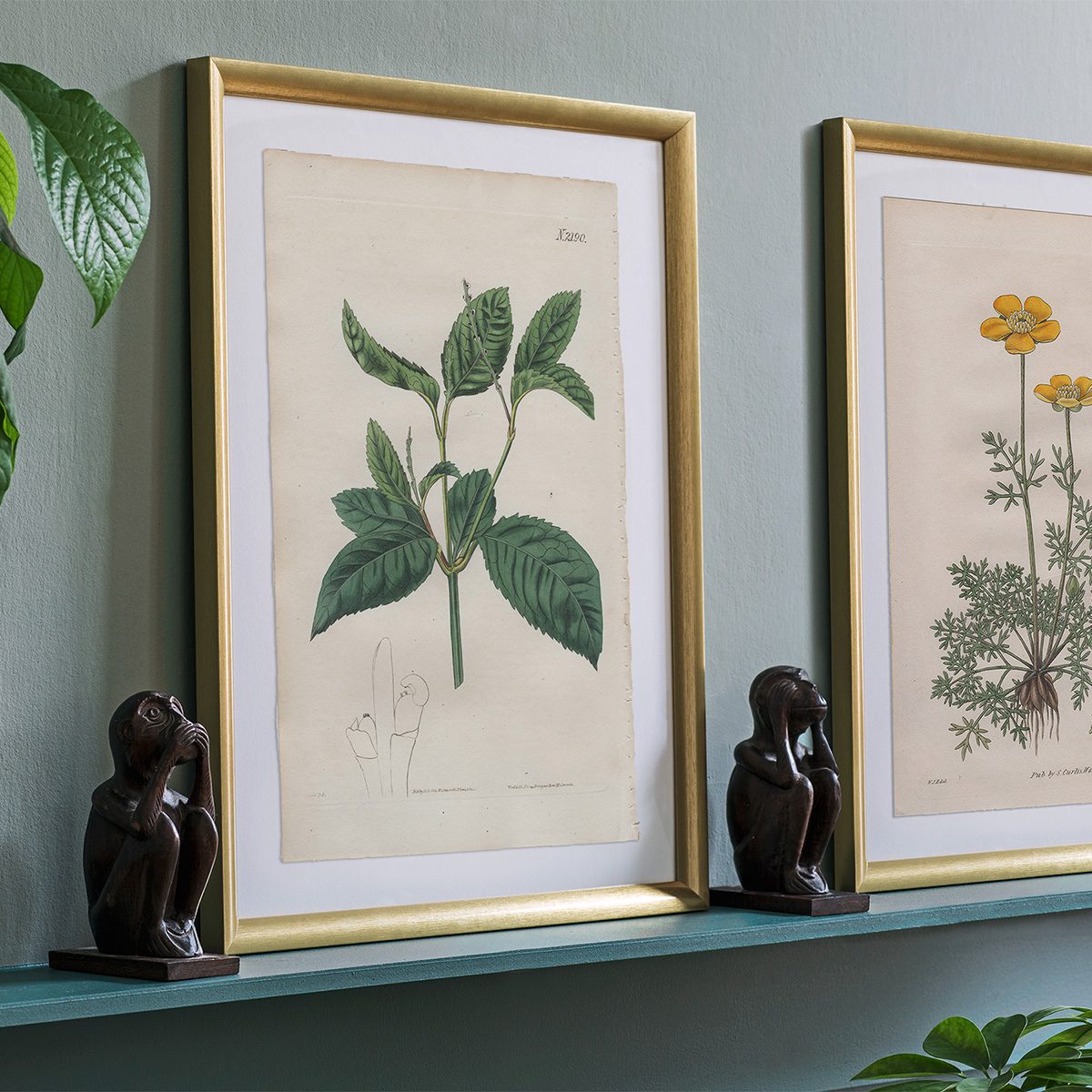 Brighten any room with a mixture of framed botanical illustration from Curtis’s Botanical Magazine. In the center is a fine art print showcasing American native plants from illustrations in Curtis’s Botanical Magazine. The smaller prints are octavo size and double octavo size hand-colored engravings from early volumes of Curtis’s Botanical Magazine.