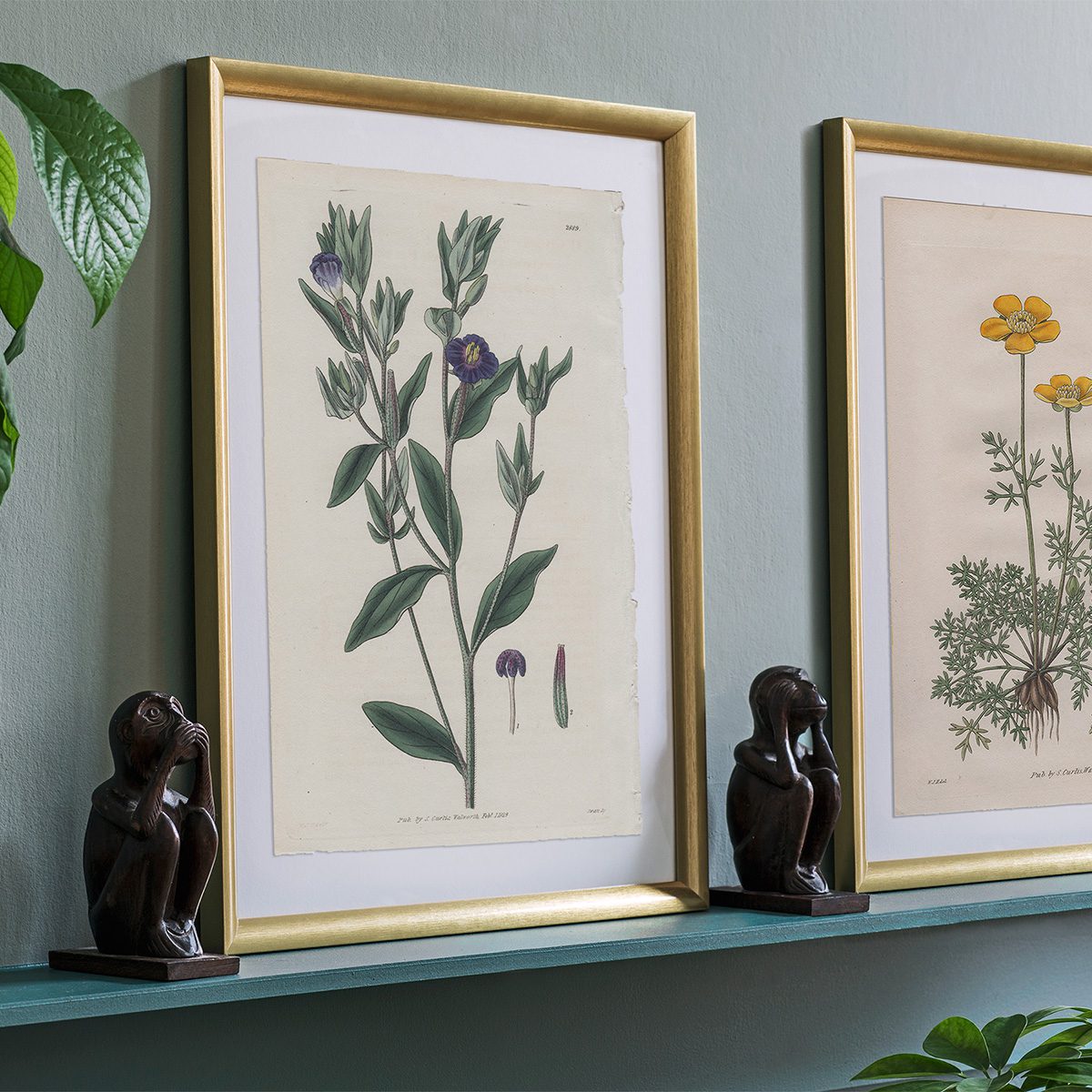 Brighten any room with a mixture of framed botanical illustration from Curtis’s Botanical Magazine. In the center is a fine art print showcasing American native plants from illustrations in Curtis’s Botanical Magazine. The smaller prints are octavo size and double octavo size hand-colored engravings from early volumes of Curtis’s Botanical Magazine.
