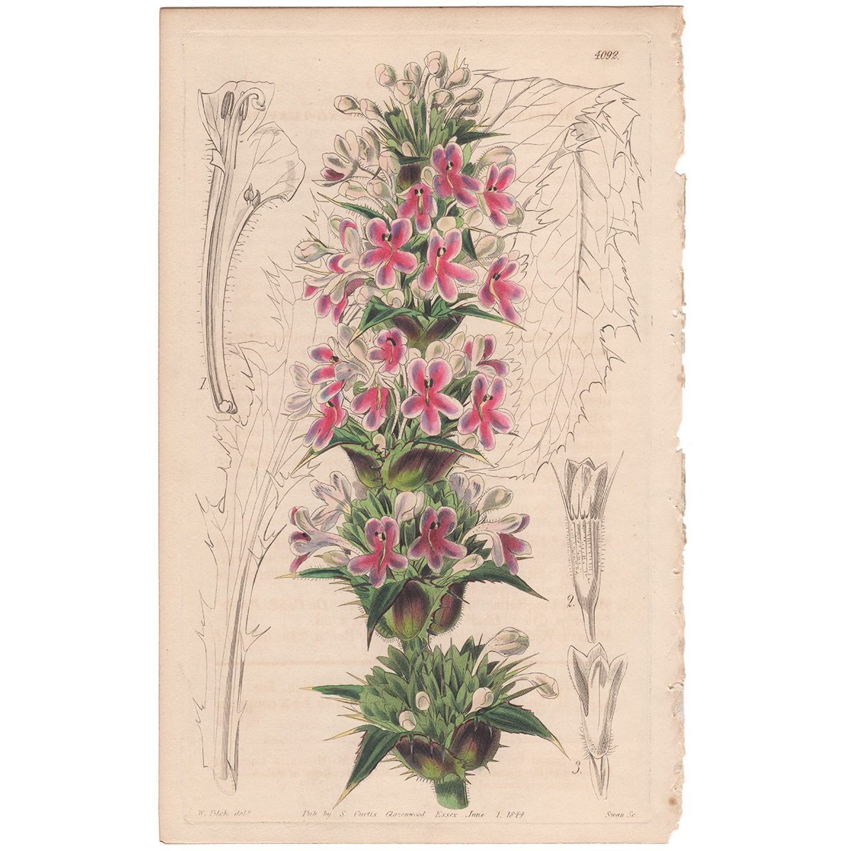 This original hand-colored engraving from Curtis’s Botanical Magazine, or Flower-Garden Displayed created in 1844 by Walter Hood Fitch illustrates flowering plants.