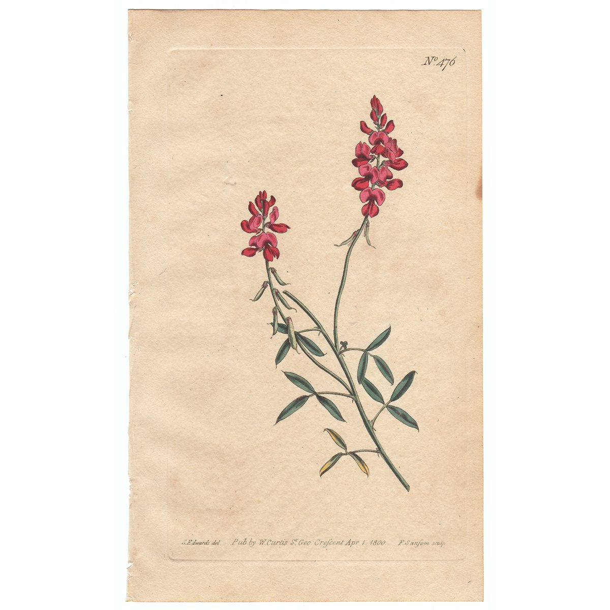 This original hand-colored engraving from The Botanical Magazine, or Flower-Garden Displayed created in 1800 by Sydenham Teast Edwards illustrates flowering plants.
