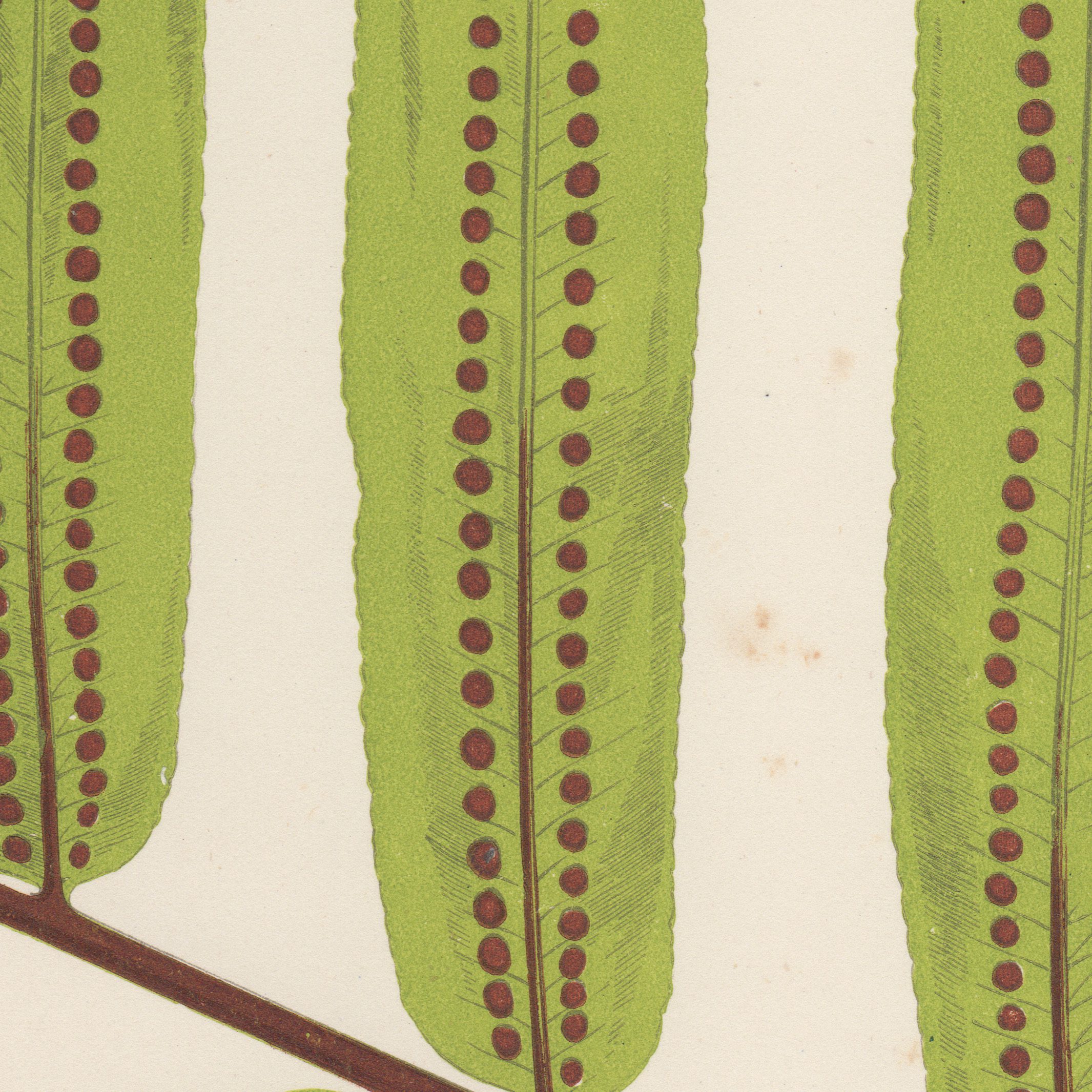 This original chromoxylograph from Ferns: British and Exotic created in 1872 by Alexander Francis Lydon illustrates ferns.
