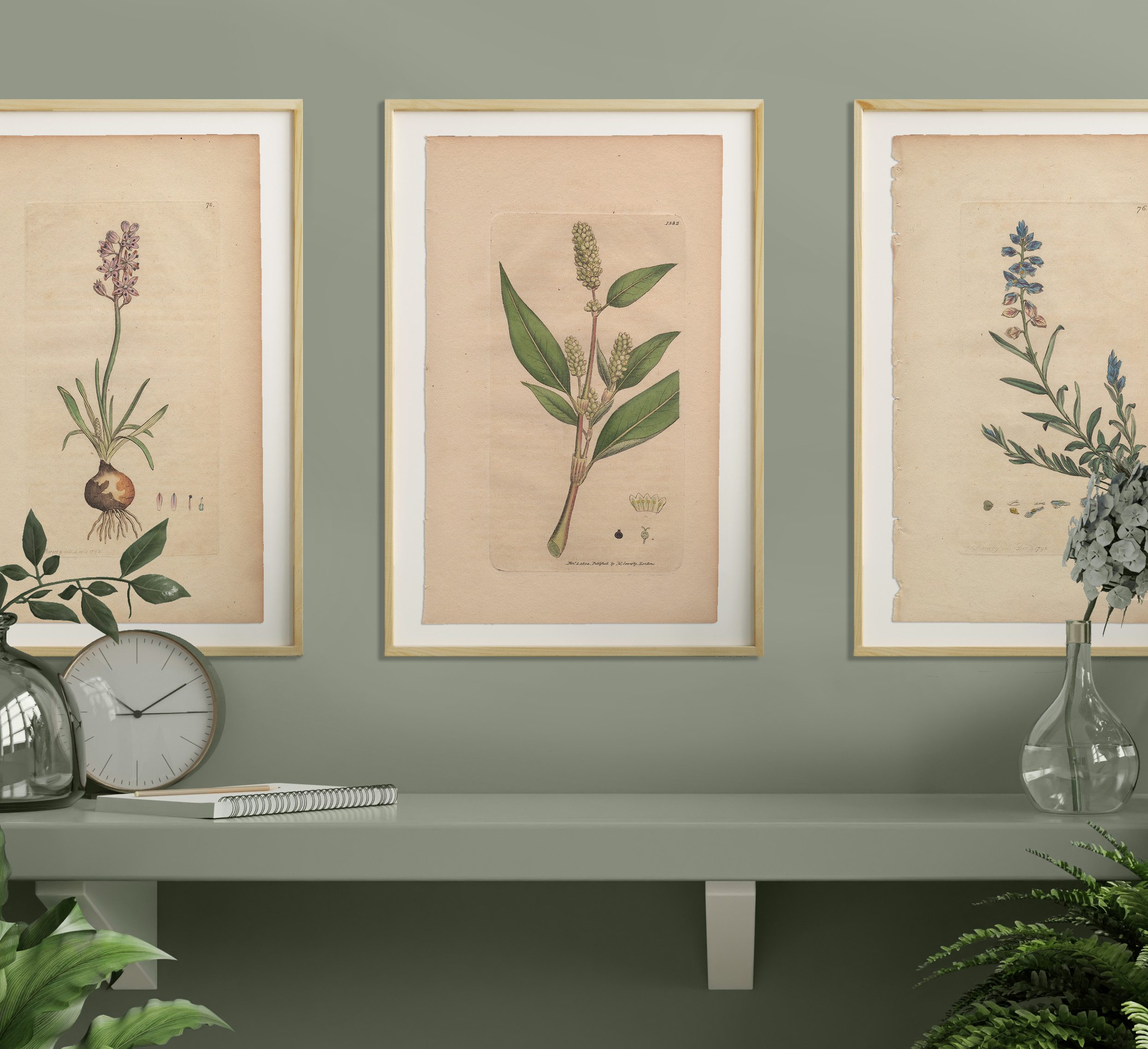 Add a garden to any room with a selection of Sowerby’s English Botany botanical prints framed in natural wood frames. Antique hand-colored engravings by James Sowerby from English Botany, available for sale, are not just exquisite pieces of botanical art; they are also historical treasures capturing the essence of 18th and 19th-century botany. Crafted with meticulous detail and artistic flair, each engraving is a testament to Sowerby’s skill and passion for botanical illustration.