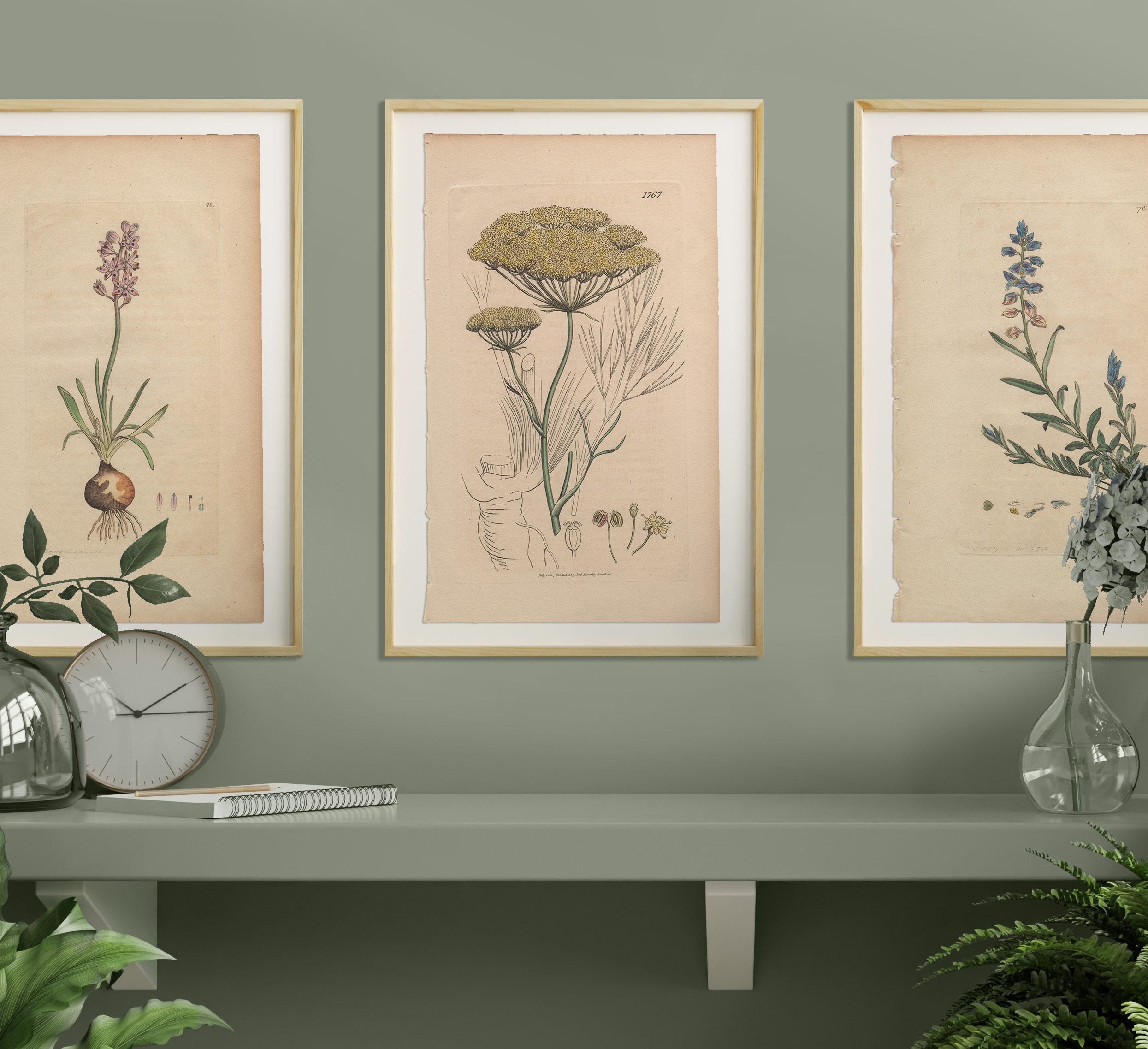 Add a garden to any room with a selection of Sowerby’s English Botany botanical prints framed in natural wood frames. Antique hand-colored engravings by James Sowerby from English Botany, available for sale, are not just exquisite pieces of botanical art; they are also historical treasures capturing the essence of 18th and 19th-century botany. Crafted with meticulous detail and artistic flair, each engraving is a testament to Sowerby’s skill and passion for botanical illustration.