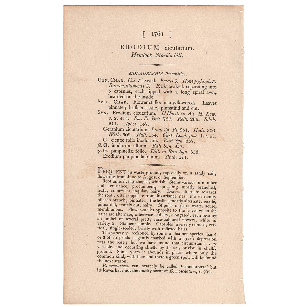 Sowerby Botany Plate 1768 Hemlock Stork’s-bill