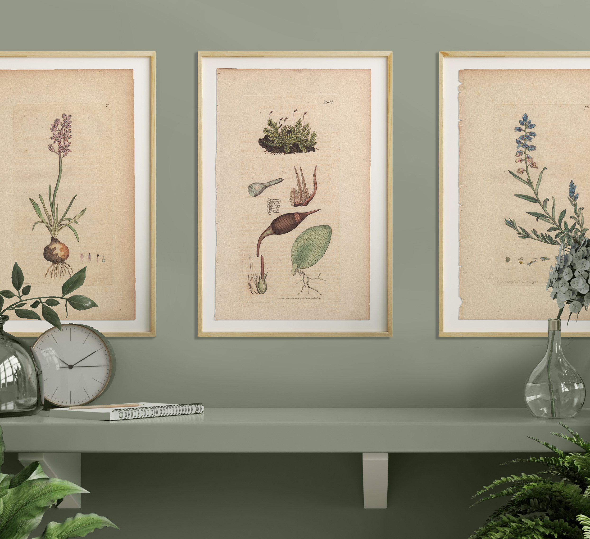 Add a garden to any room with a selection of Sowerby’s English Botany botanical prints framed in natural wood frames. Antique hand-colored engravings by James Sowerby from English Botany, available for sale, are not just exquisite pieces of botanical art; they are also historical treasures capturing the essence of 18th and 19th-century botany. Crafted with meticulous detail and artistic flair, each engraving is a testament to Sowerby’s skill and passion for botanical illustration.