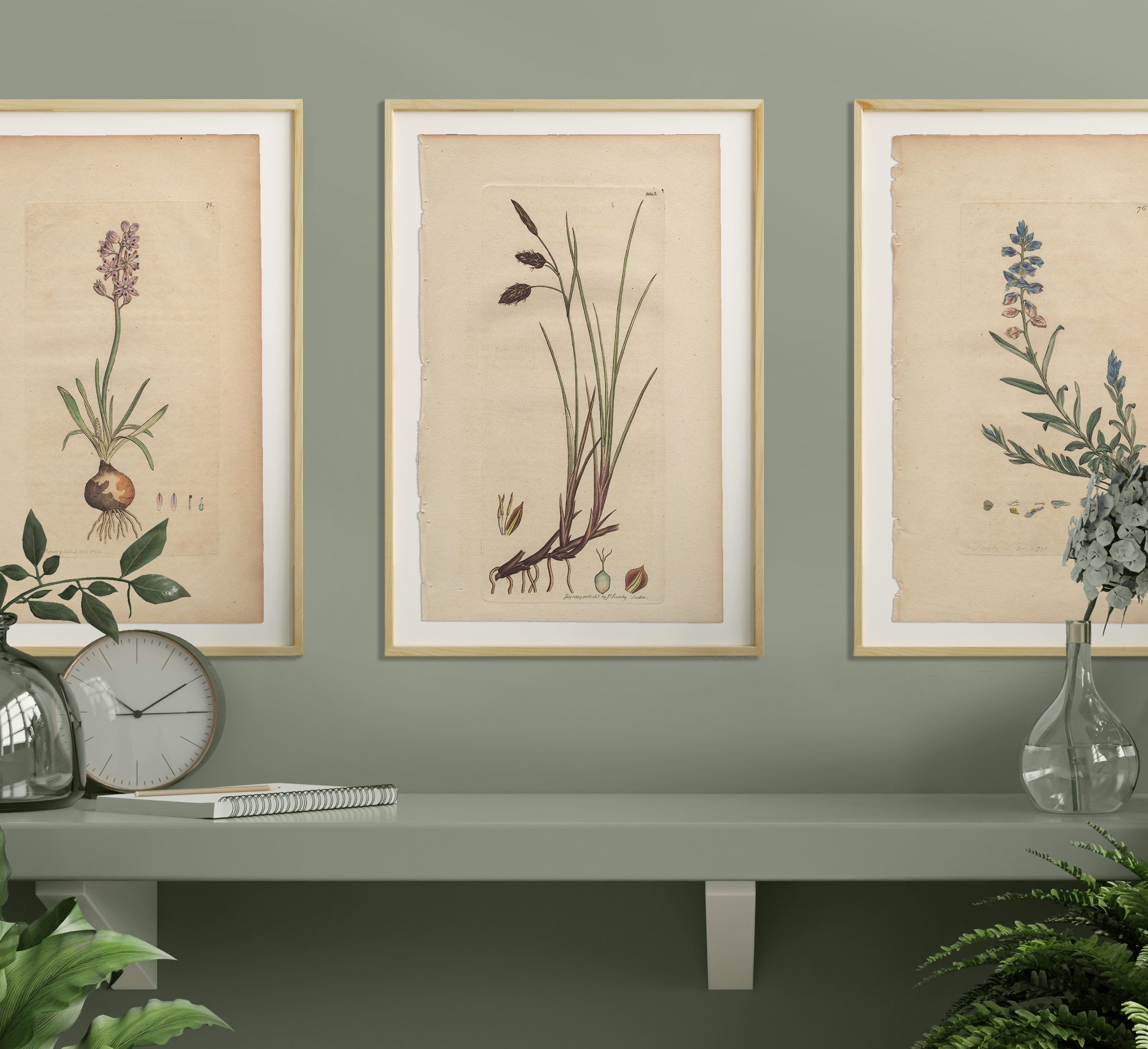 Add a garden to any room with a selection of Sowerby’s English Botany botanical prints framed in natural wood frames. Antique hand-colored engravings by James Sowerby from English Botany, available for sale, are not just exquisite pieces of botanical art; they are also historical treasures capturing the essence of 18th and 19th-century botany. Crafted with meticulous detail and artistic flair, each engraving is a testament to Sowerby’s skill and passion for botanical illustration.