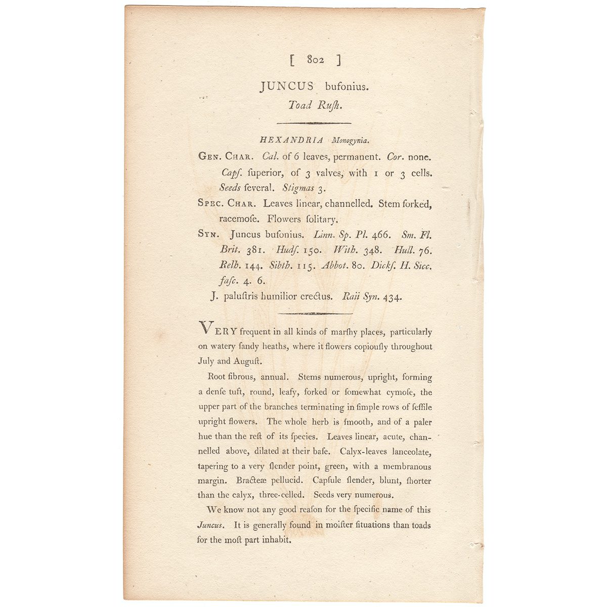 Sowerby Botany Plate 802 Toad Rush