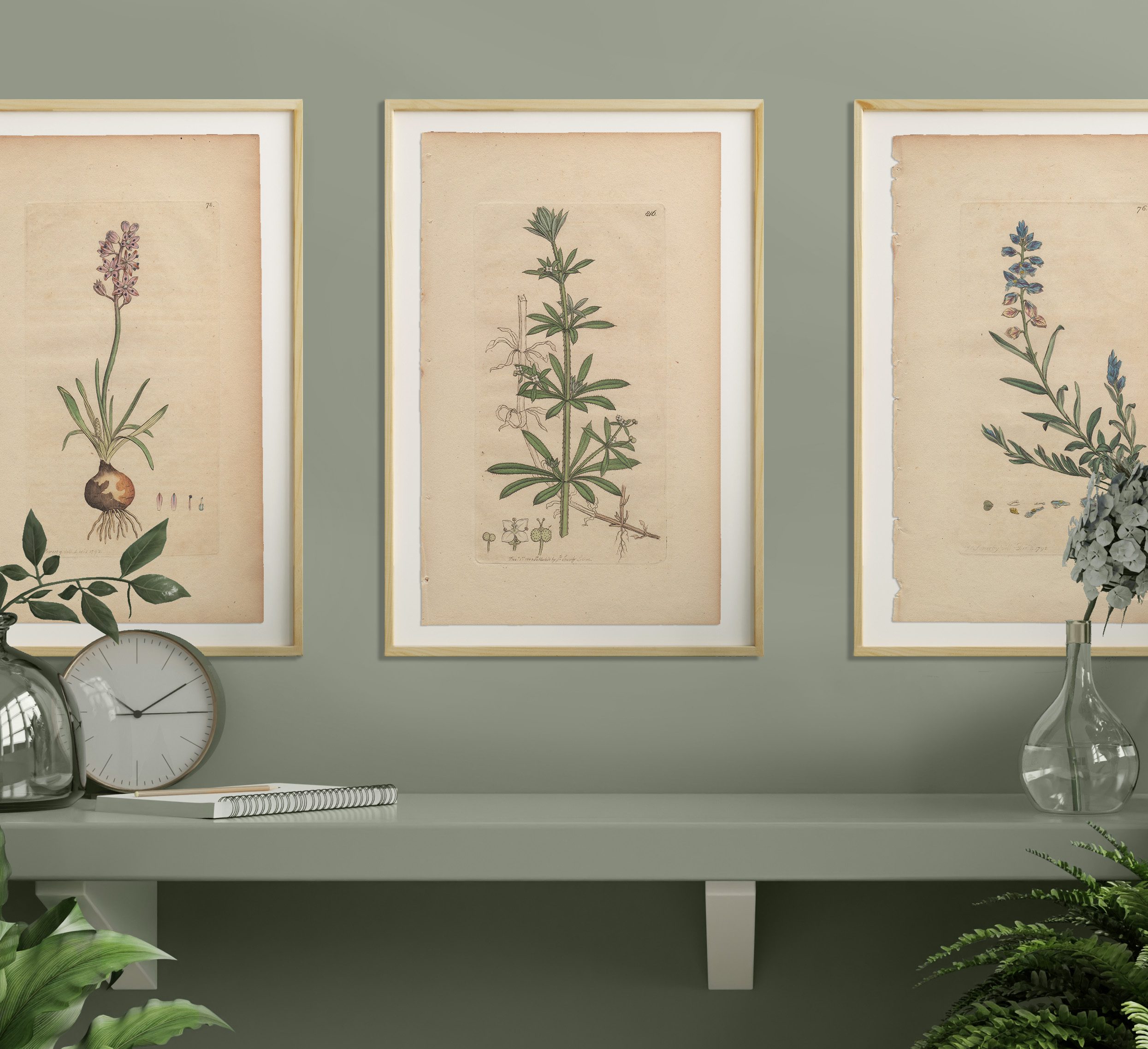 Add a garden to any room with a selection of Sowerby’s English Botany botanical prints framed in natural wood frames. Antique hand-colored engravings by James Sowerby from English Botany, available for sale, are not just exquisite pieces of botanical art; they are also historical treasures capturing the essence of 18th and 19th-century botany. Crafted with meticulous detail and artistic flair, each engraving is a testament to Sowerby’s skill and passion for botanical illustration.