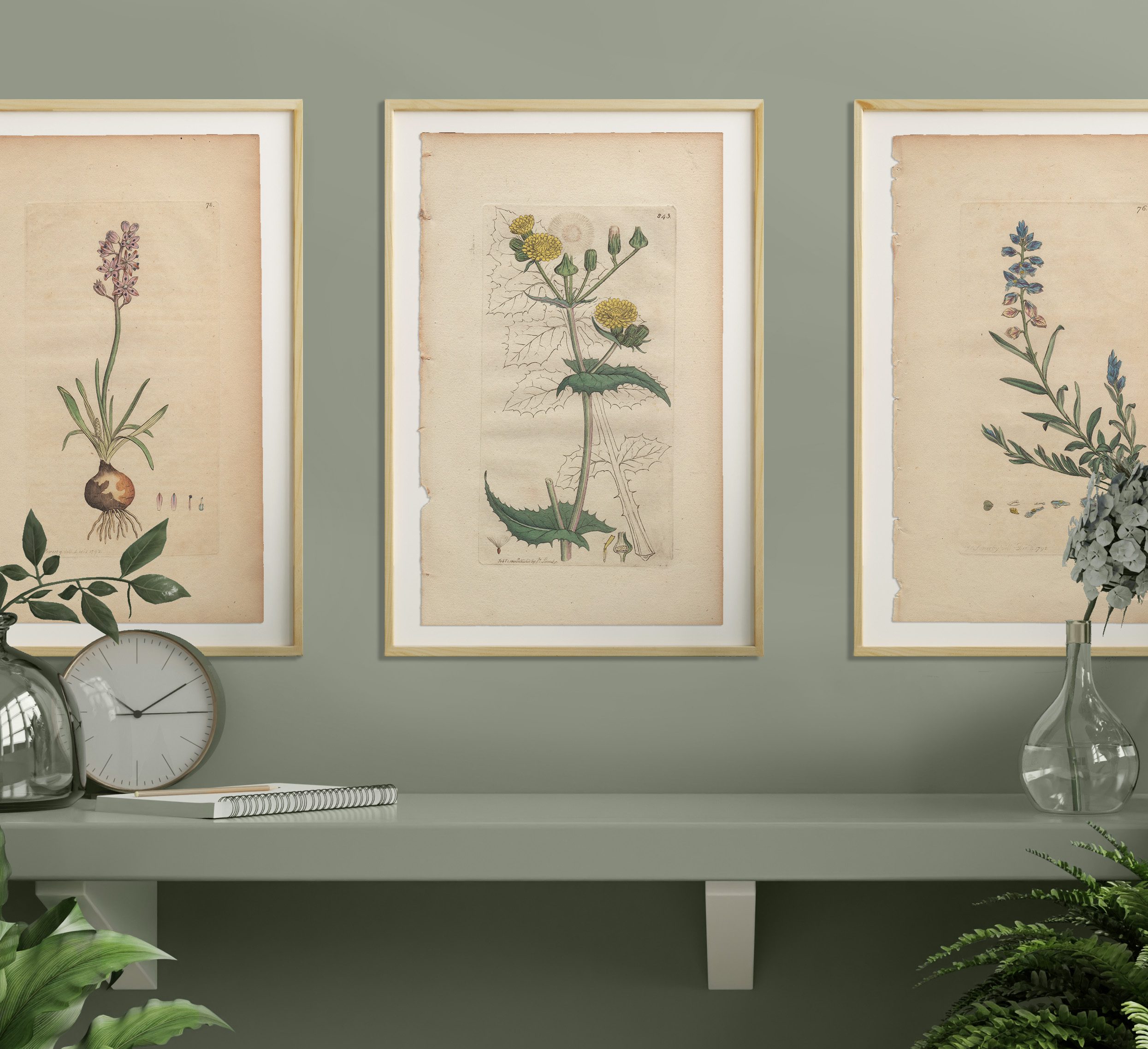 Add a garden to any room with a selection of Sowerby’s English Botany botanical prints framed in natural wood frames. Antique hand-colored engravings by James Sowerby from English Botany, available for sale, are not just exquisite pieces of botanical art; they are also historical treasures capturing the essence of 18th and 19th-century botany. Crafted with meticulous detail and artistic flair, each engraving is a testament to Sowerby’s skill and passion for botanical illustration.