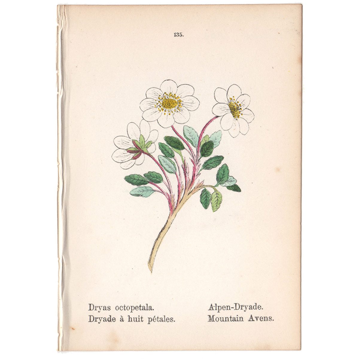 Explore and purchase hand-colored lithographs from Die Alpen-Pflanzen Deutschlands und der Schweiz (The Alpine Plants of Germany and Switzerland) illustrated by J. C. Weber. These small prints illustrate alpine plants and show the plant name in multiple languages. Each plate is also numbered.