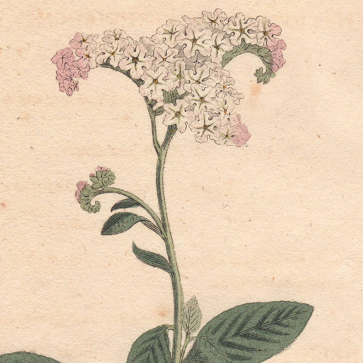 This original hand-colored engraving from The Botanical Magazine, or Flower-Garden Displayed created in 1792 by Sydenham Teast Edwards illustrates flowering plants.