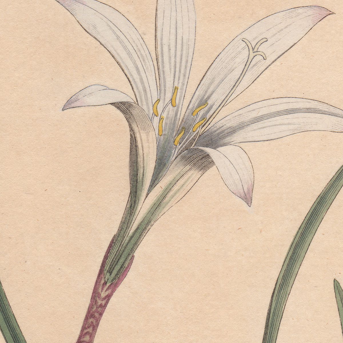 Each engraving tells a unique story, depicting plant specimens discovered and documented by botanists and explorers during a time of great scientific exploration and discovery. Whether one is drawn to the delicate beauty of a particular flower or the historical significance of a botanical illustration, owning a hand-colored engraving from Curtis’s Botanical Magazine is a way to connect with the rich tapestry of botanical knowledge and discovery that has shaped our understanding of the natural world.