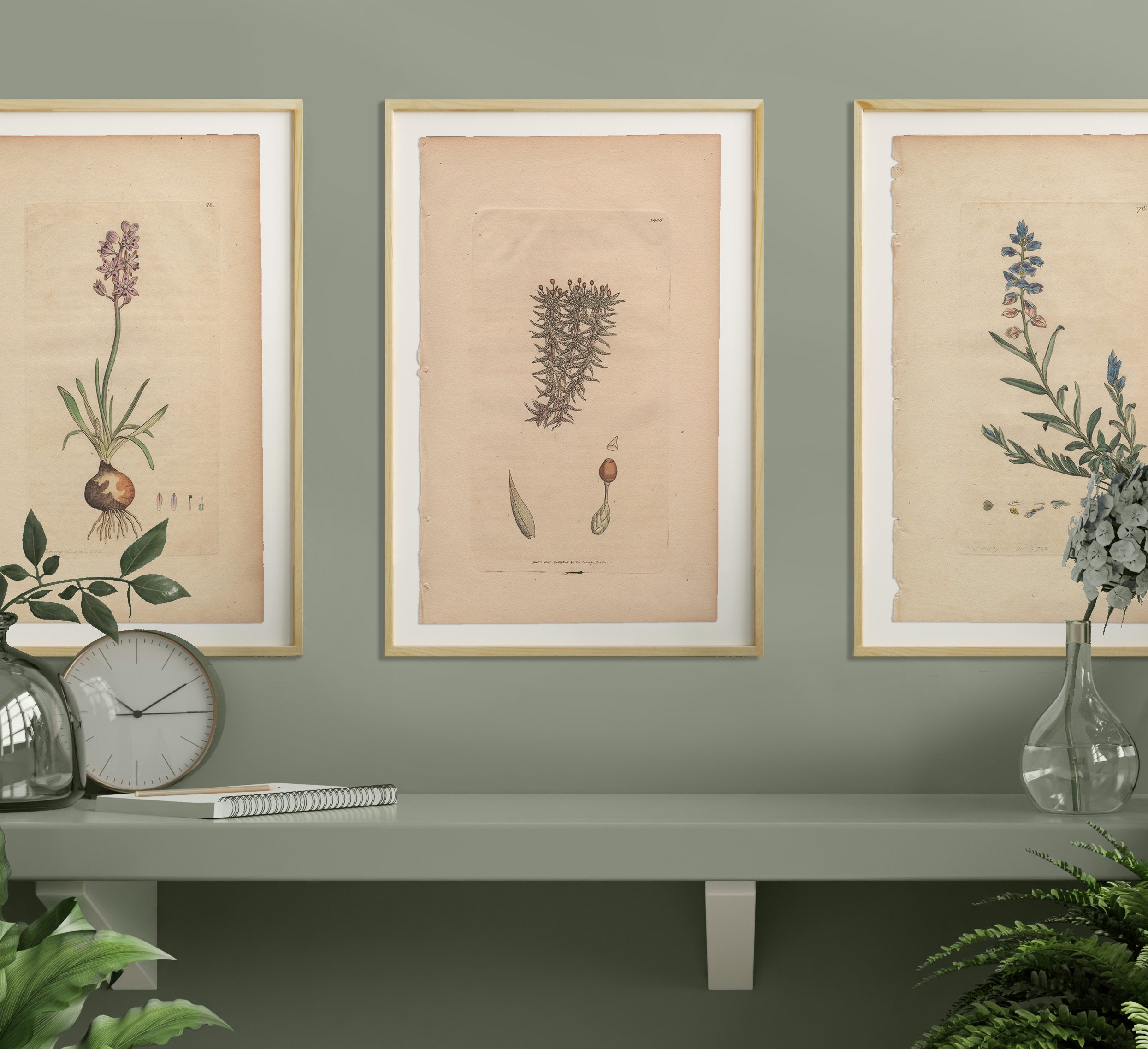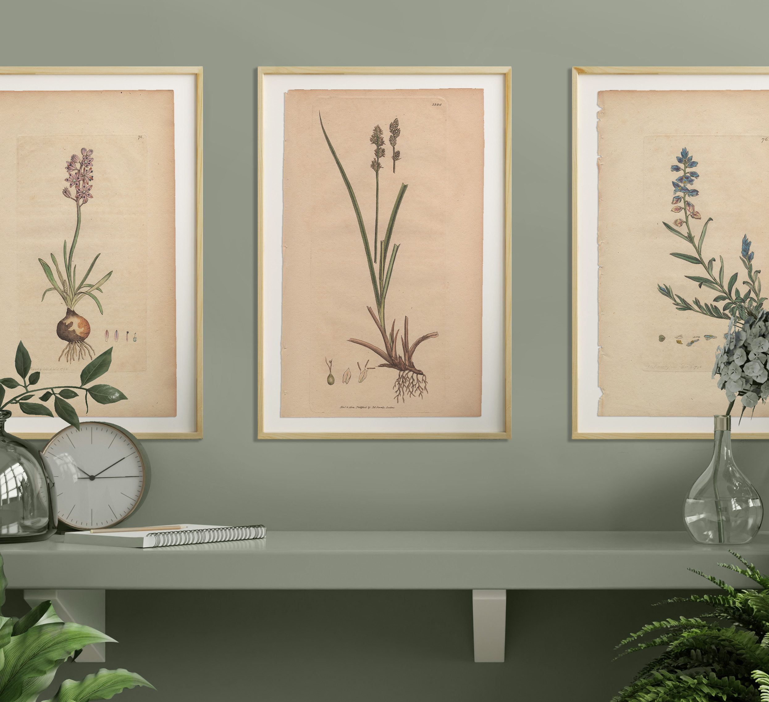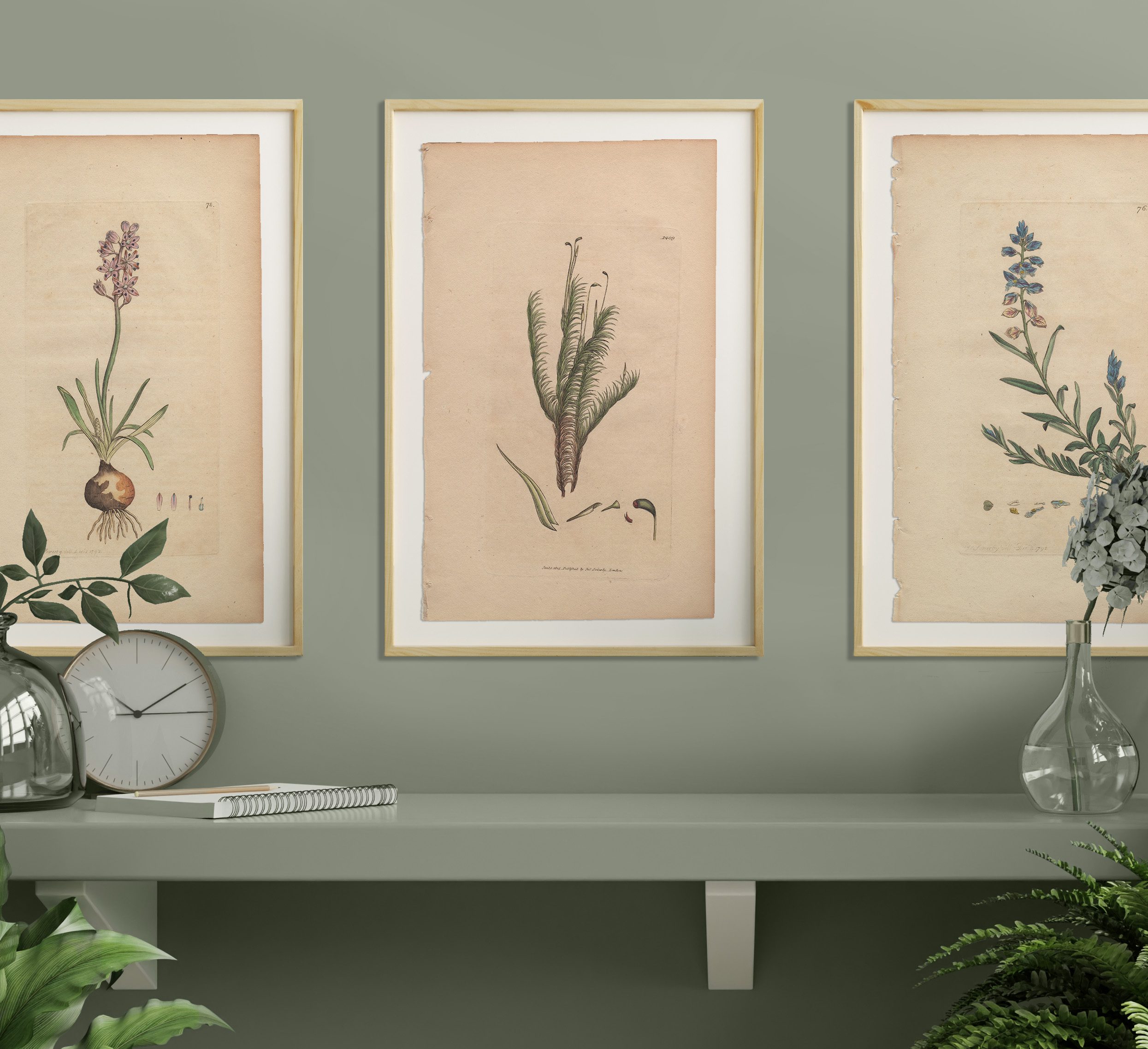 Add a garden to any room with a selection of Sowerby’s English Botany botanical prints framed in natural wood frames. Antique hand-colored engravings by James Sowerby from English Botany, available for sale, are not just exquisite pieces of botanical art; they are also historical treasures capturing the essence of 18th and 19th-century botany. Crafted with meticulous detail and artistic flair, each engraving is a testament to Sowerby’s skill and passion for botanical illustration.