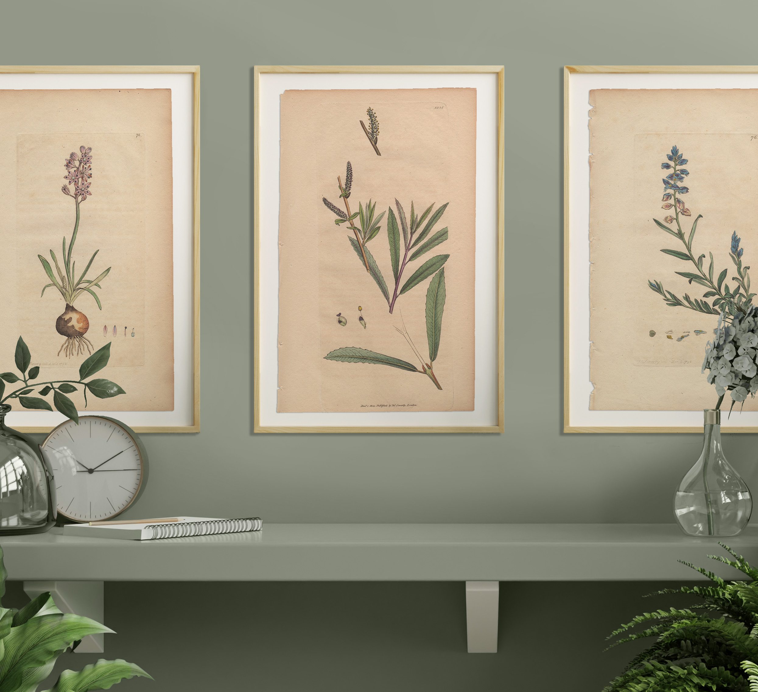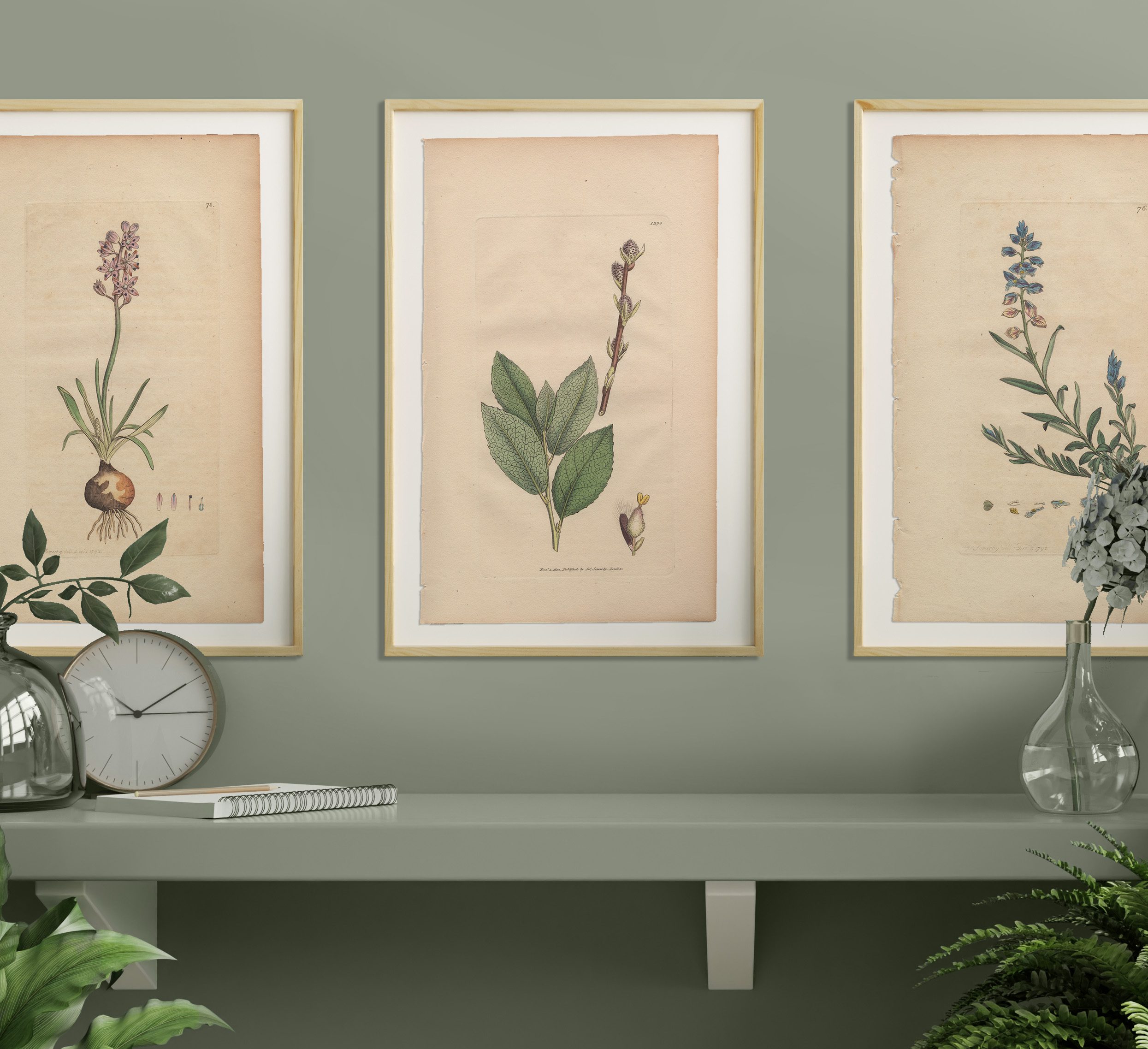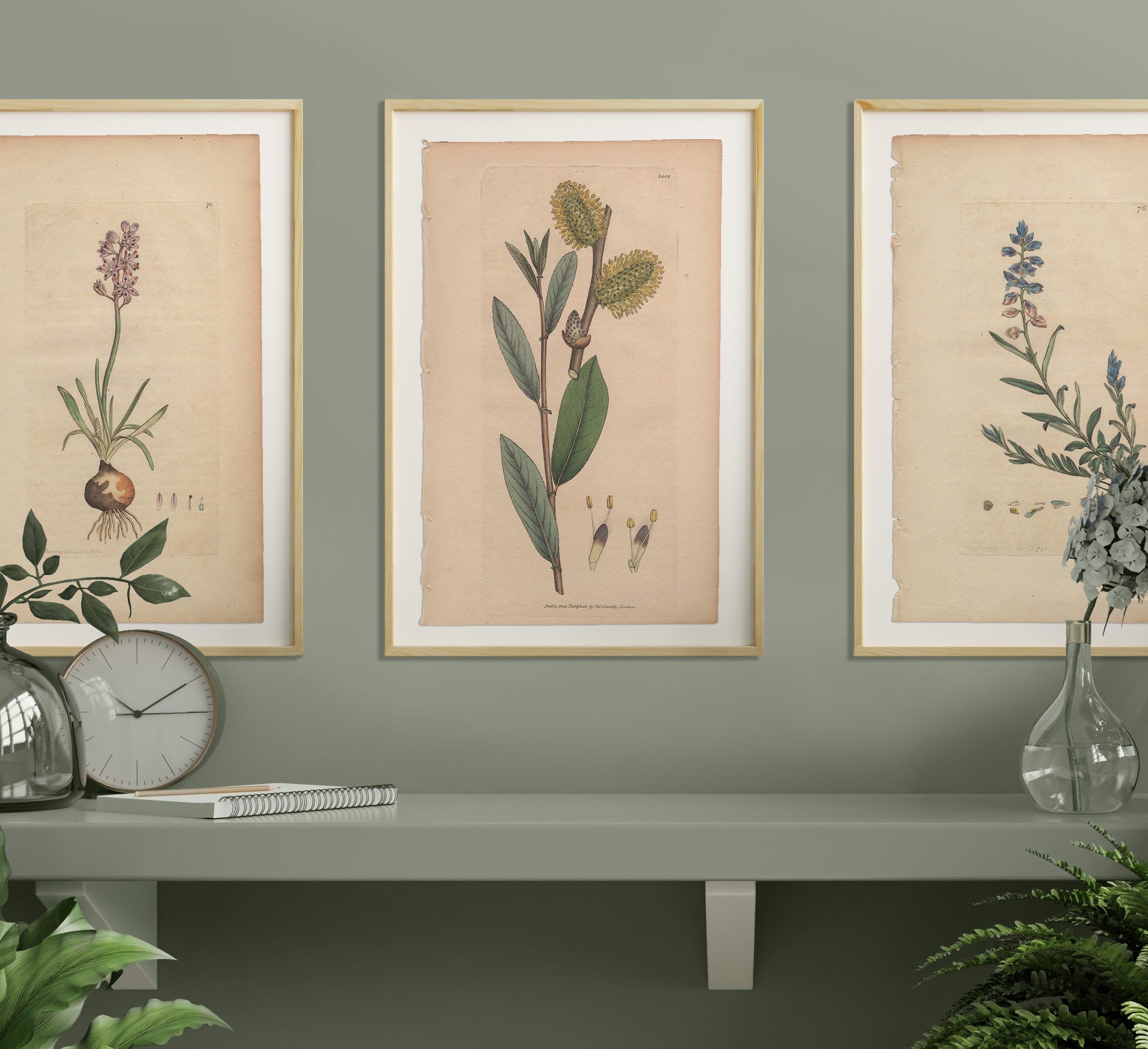 Add a garden to any room with a selection of Sowerby’s English Botany botanical prints framed in natural wood frames. Antique hand-colored engravings by James Sowerby from English Botany, available for sale, are not just exquisite pieces of botanical art; they are also historical treasures capturing the essence of 18th and 19th-century botany. Crafted with meticulous detail and artistic flair, each engraving is a testament to Sowerby’s skill and passion for botanical illustration.