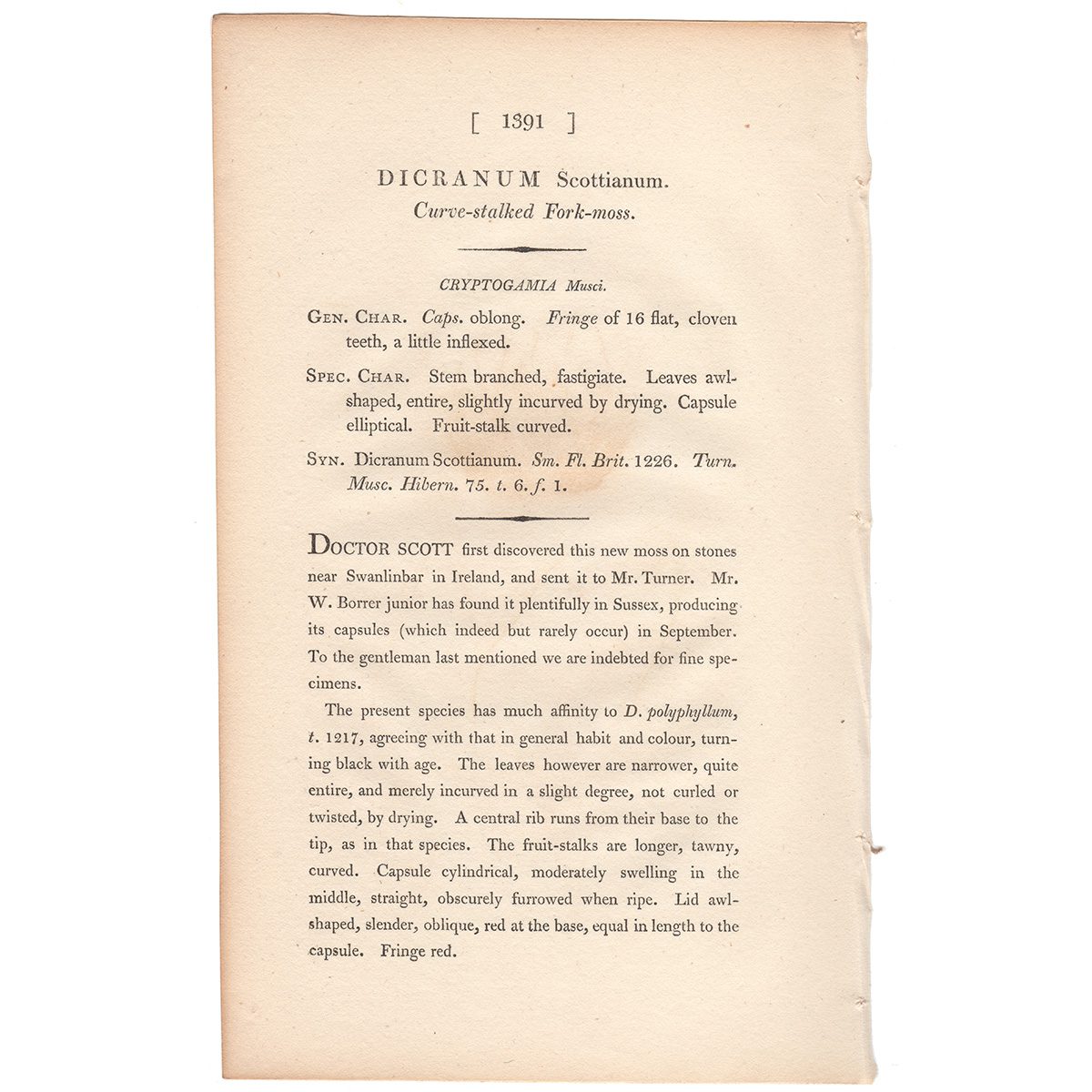 Sowerby Botany Plate 1391 Curved-stalked Fork-moss