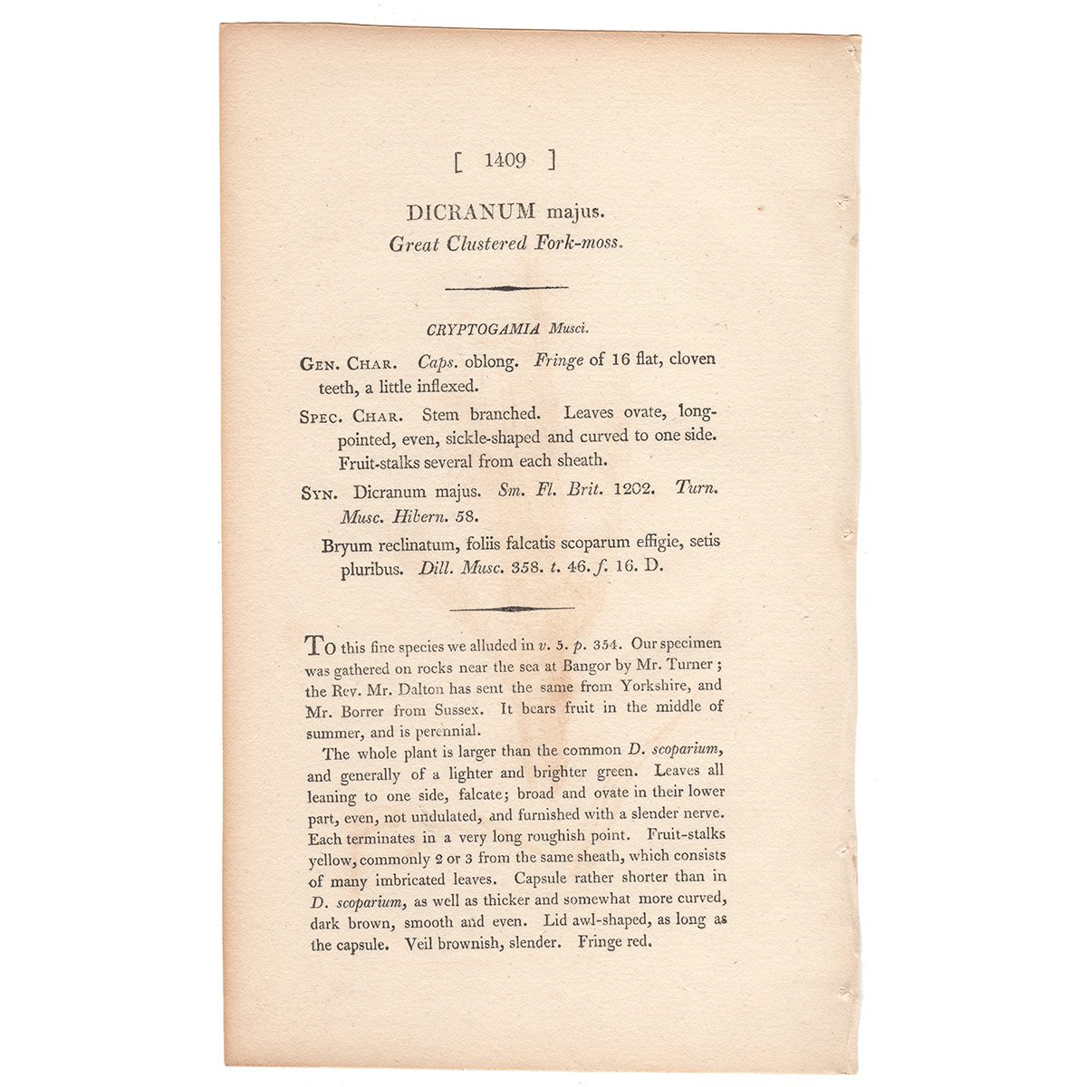 Sowerby Botany Plate 1409 Great Clustered Fork-moss