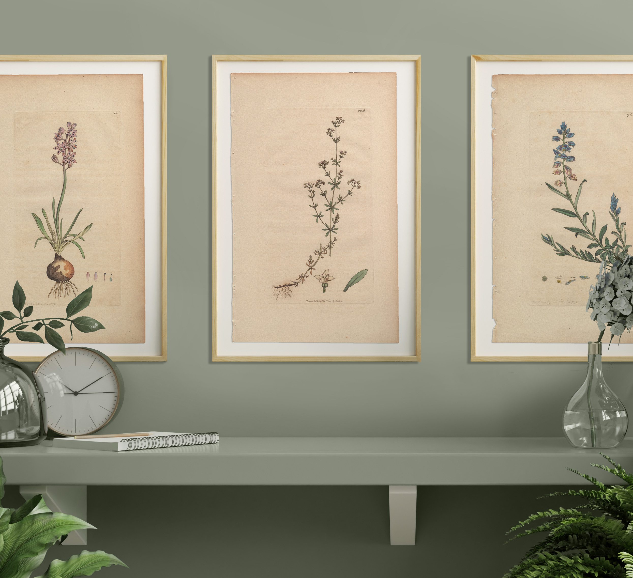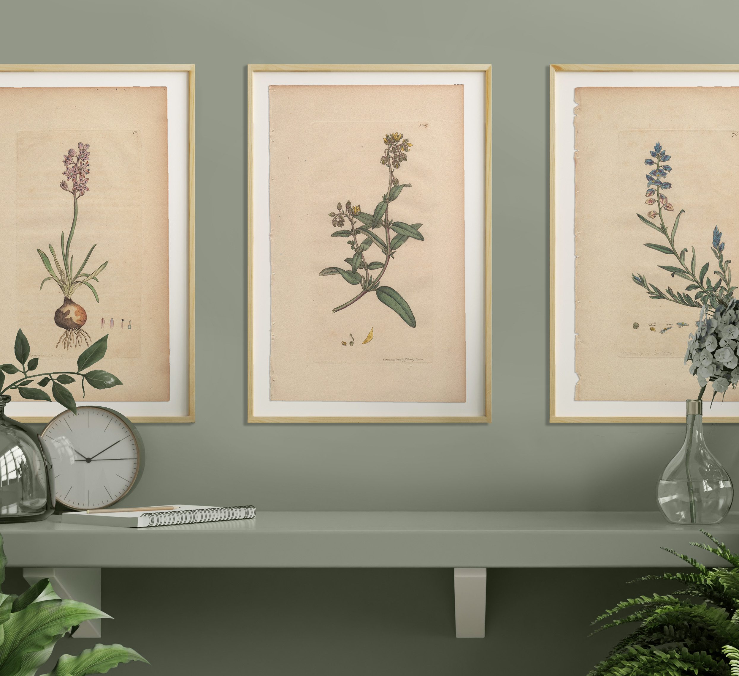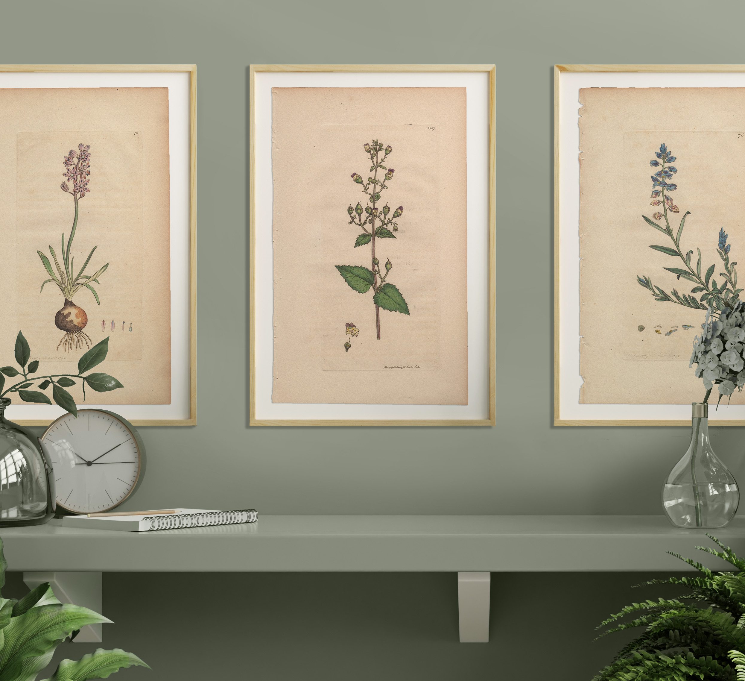 Add a garden to any room with a selection of Sowerby’s English Botany botanical prints framed in natural wood frames. Antique hand-colored engravings by James Sowerby from English Botany, available for sale, are not just exquisite pieces of botanical art; they are also historical treasures capturing the essence of 18th and 19th-century botany. Crafted with meticulous detail and artistic flair, each engraving is a testament to Sowerby’s skill and passion for botanical illustration.