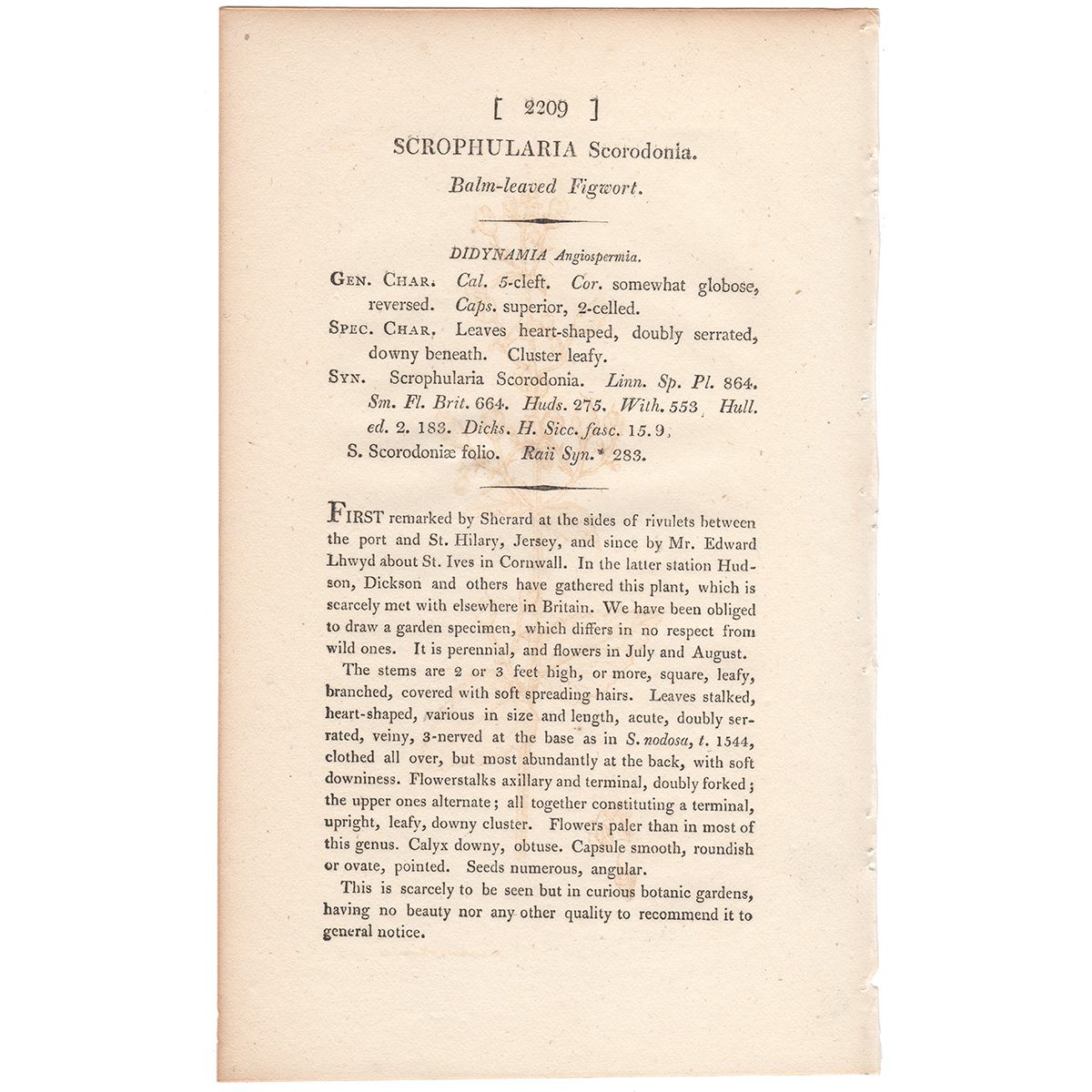 $18.50 – $270.00Price range: $18.50 through $270.00Sowerby Botany Plate 2209 Balm-leaved Figwort