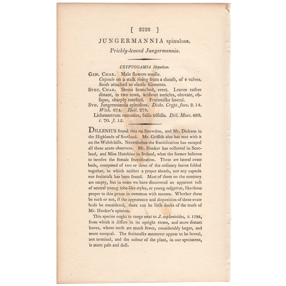 Sowerby Botany Plate 2228 Prickly-leaved Jungermannia