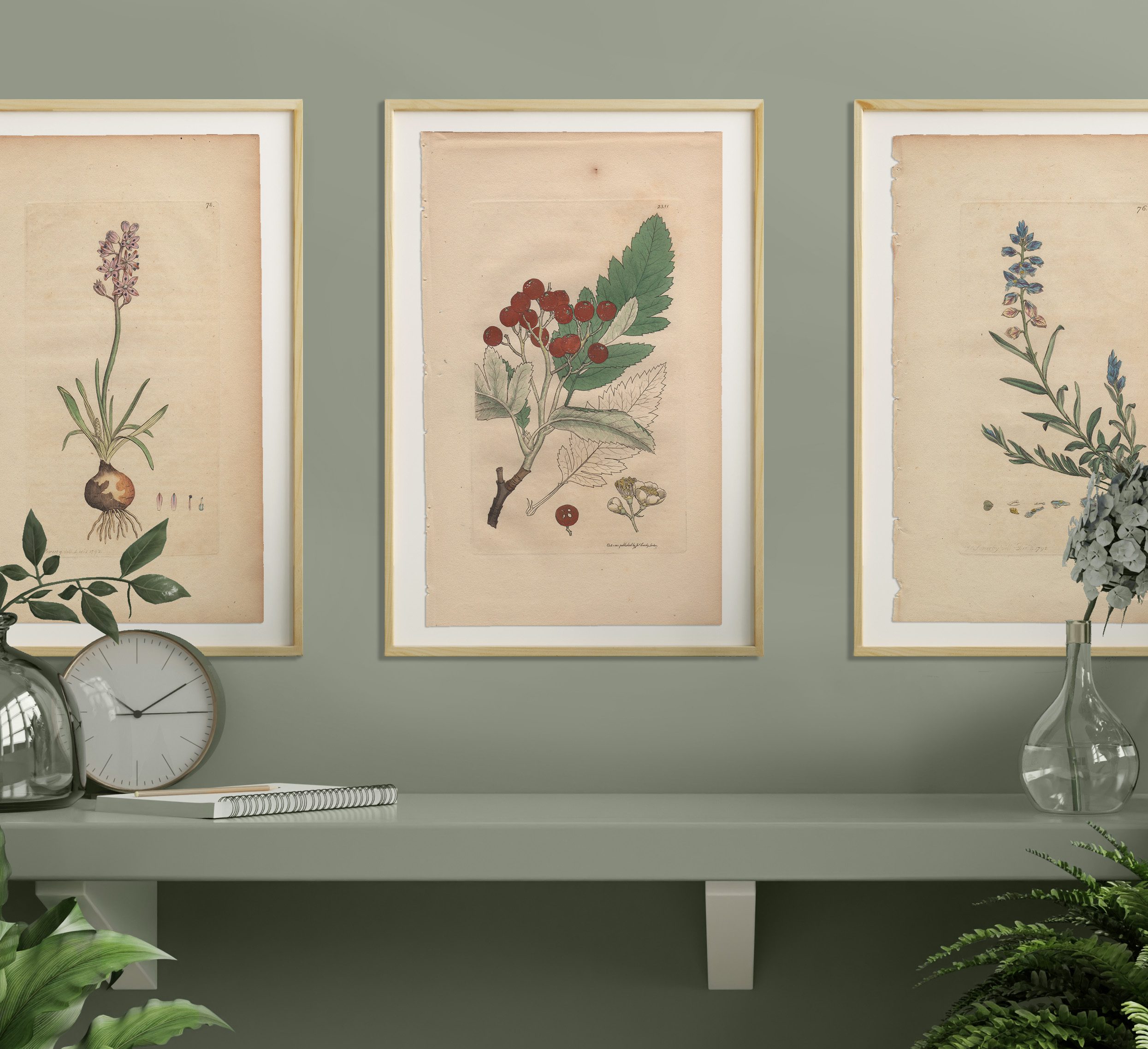 Add a garden to any room with a selection of Sowerby’s English Botany botanical prints framed in natural wood frames. Antique hand-colored engravings by James Sowerby from English Botany, available for sale, are not just exquisite pieces of botanical art; they are also historical treasures capturing the essence of 18th and 19th-century botany. Crafted with meticulous detail and artistic flair, each engraving is a testament to Sowerby’s skill and passion for botanical illustration.