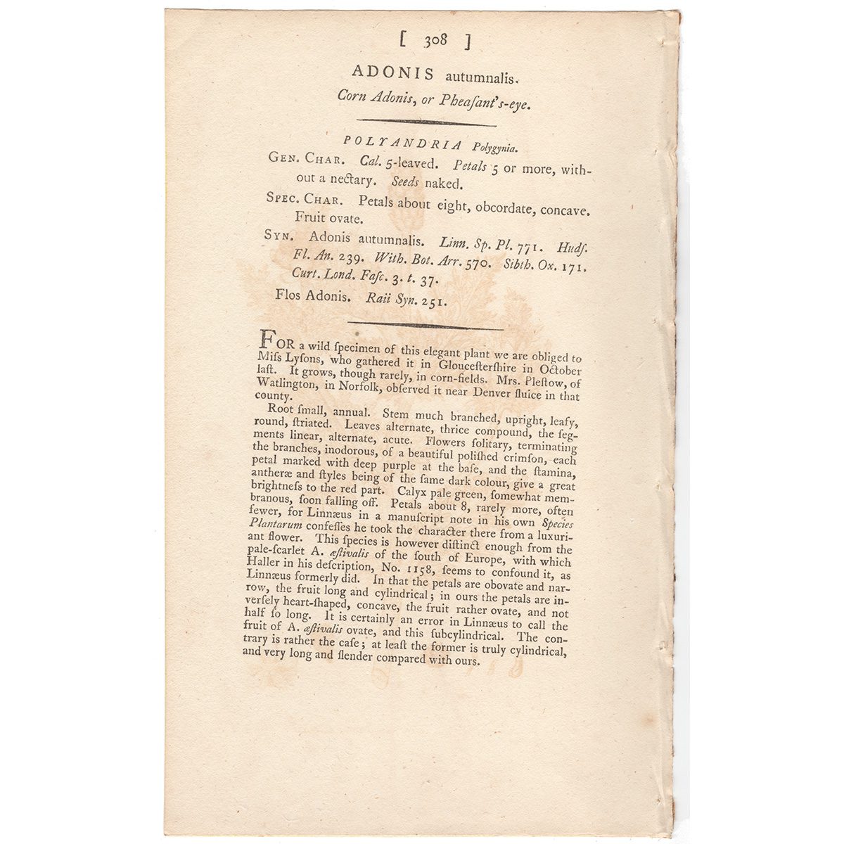 Sowerby Botany Plate 308 Corn Adonis, or Pheasant’s-eye