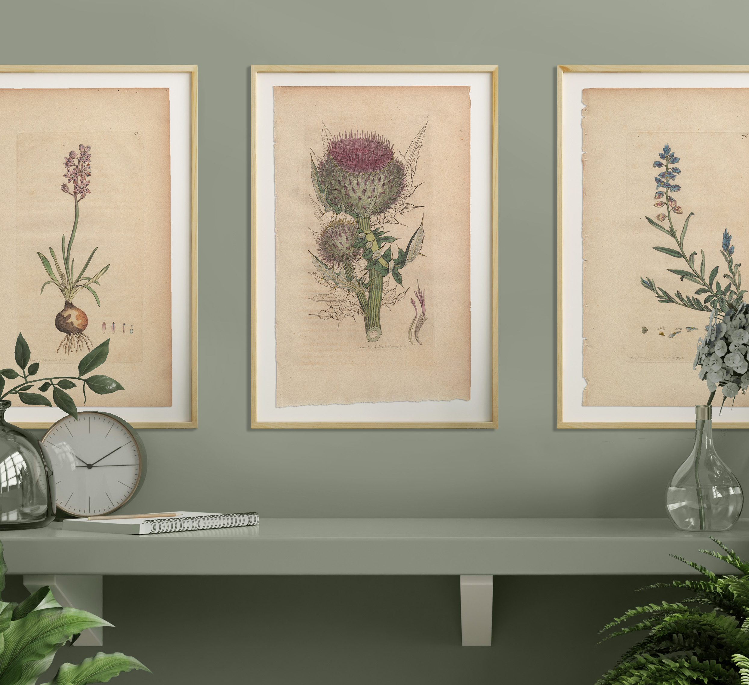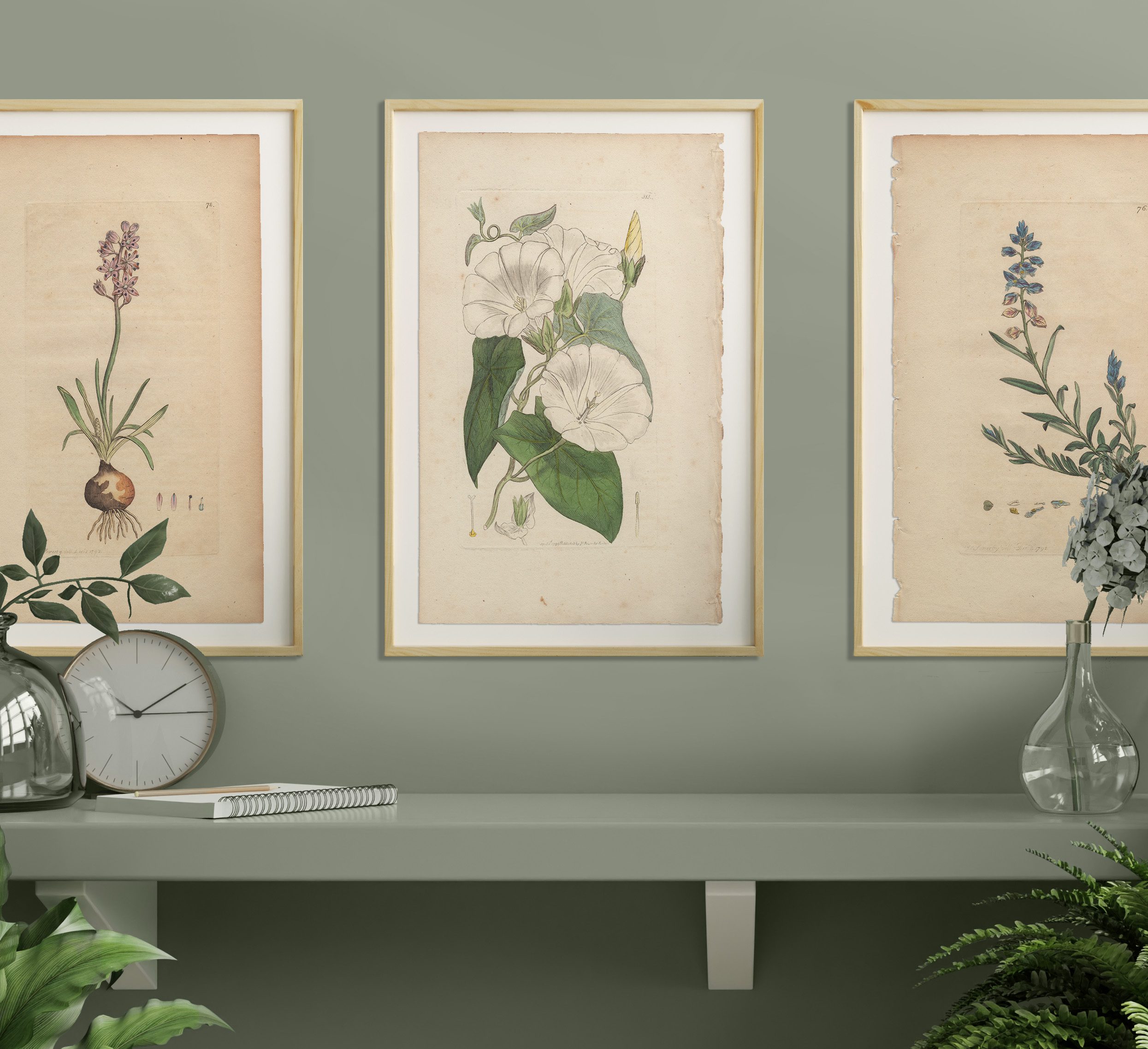 Add a garden to any room with a selection of Sowerby’s English Botany botanical prints framed in natural wood frames. Antique hand-colored engravings by James Sowerby from English Botany, available for sale, are not just exquisite pieces of botanical art; they are also historical treasures capturing the essence of 18th and 19th-century botany. Crafted with meticulous detail and artistic flair, each engraving is a testament to Sowerby’s skill and passion for botanical illustration.