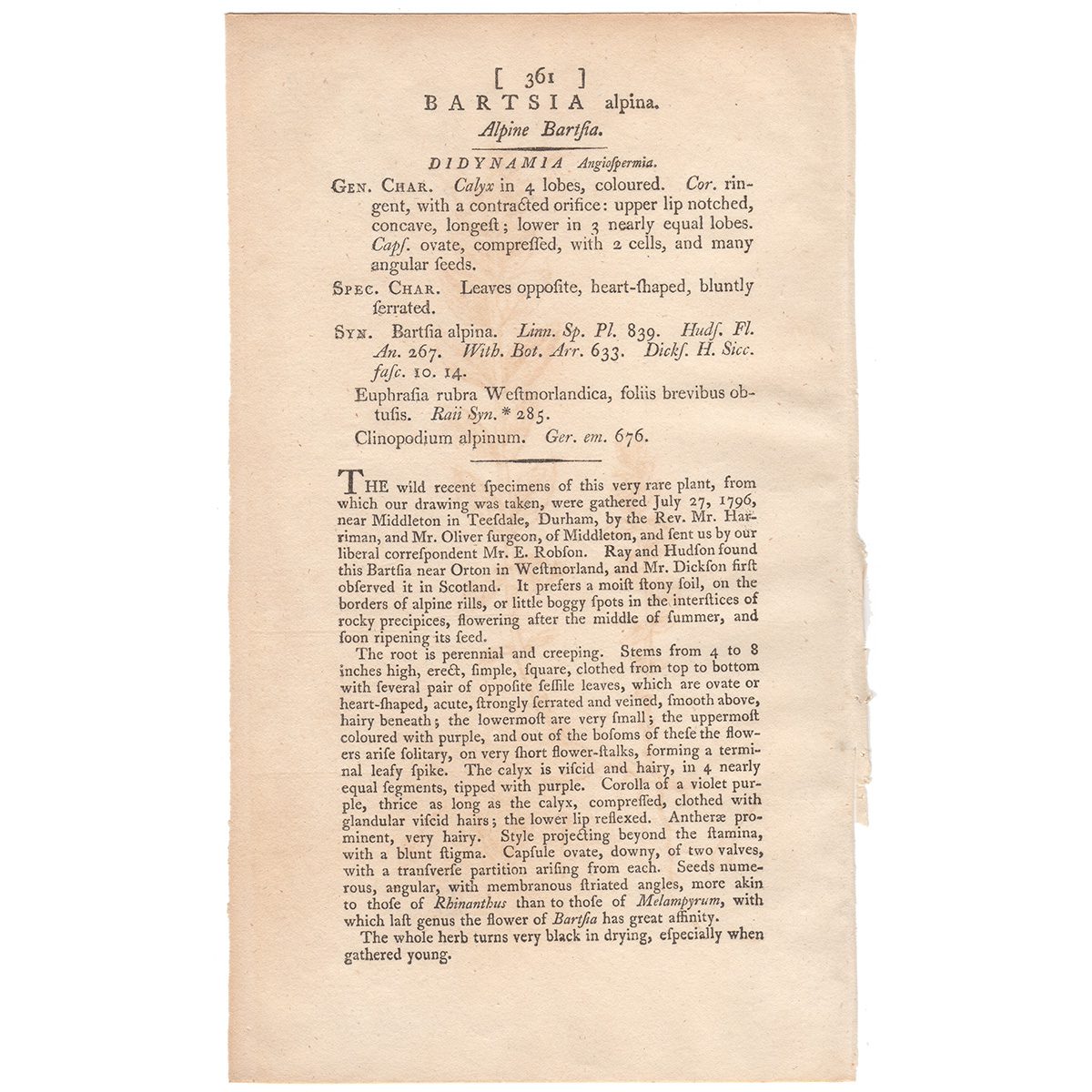 Sowerby Botany Plate 361 Alpine Bartsia