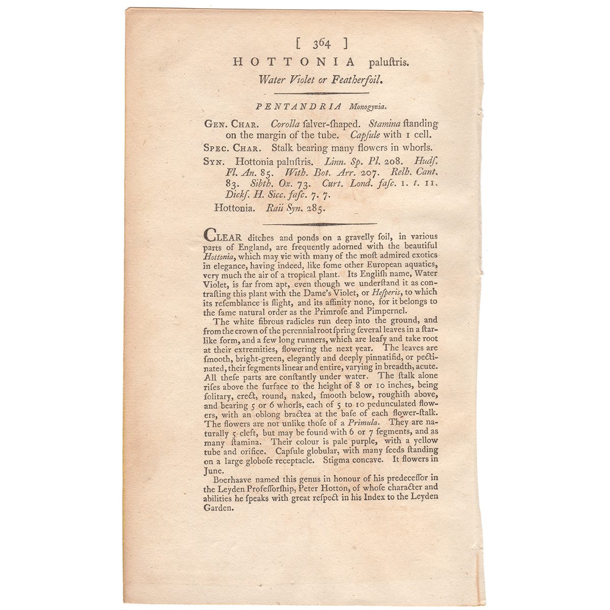 Sowerby Botany Plate 364 Water Violet or Featherfoil