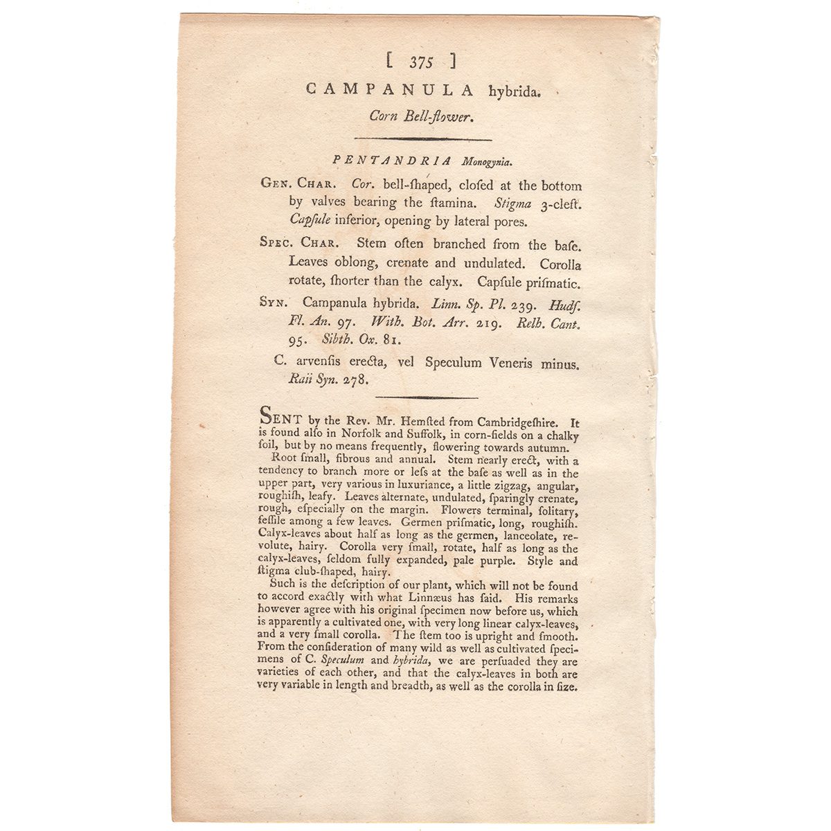 Sowerby Botany Plate 375 Corn Bell-flower