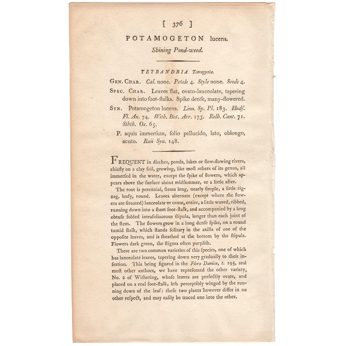 Sowerby Botany Plate 376 Shining Pond-weed