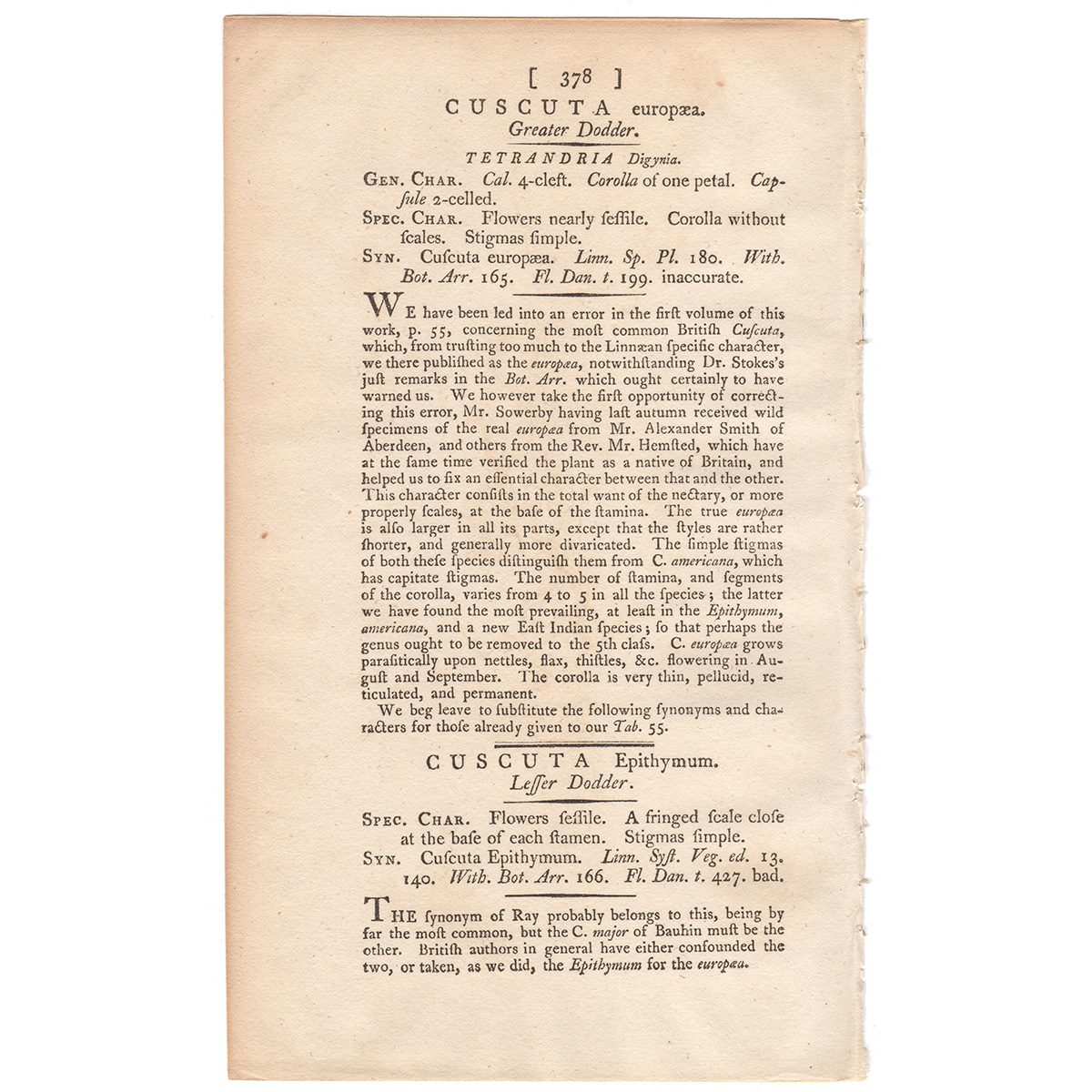 Sowerby Botany Plate 378 Greater Dodder; Lesser Dodder