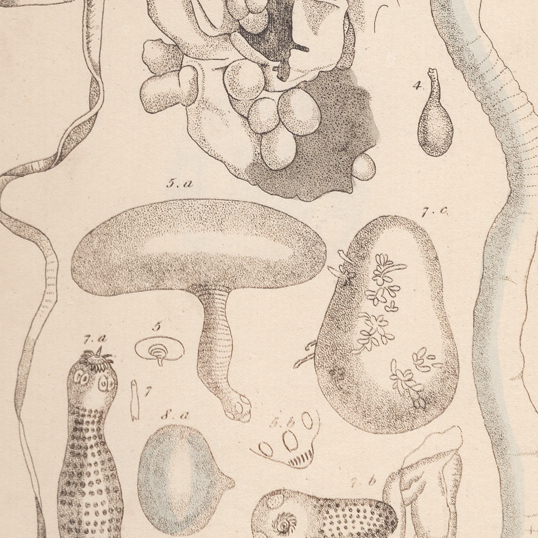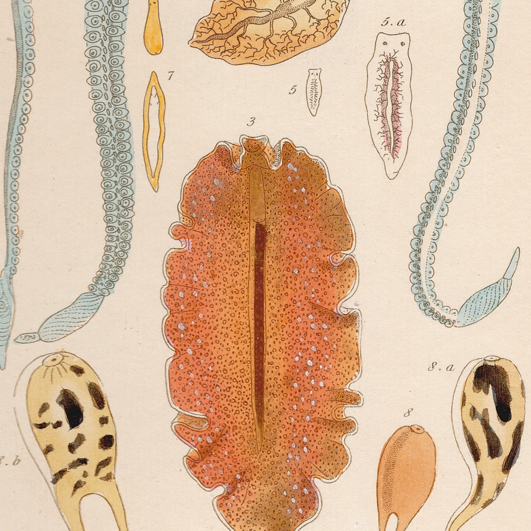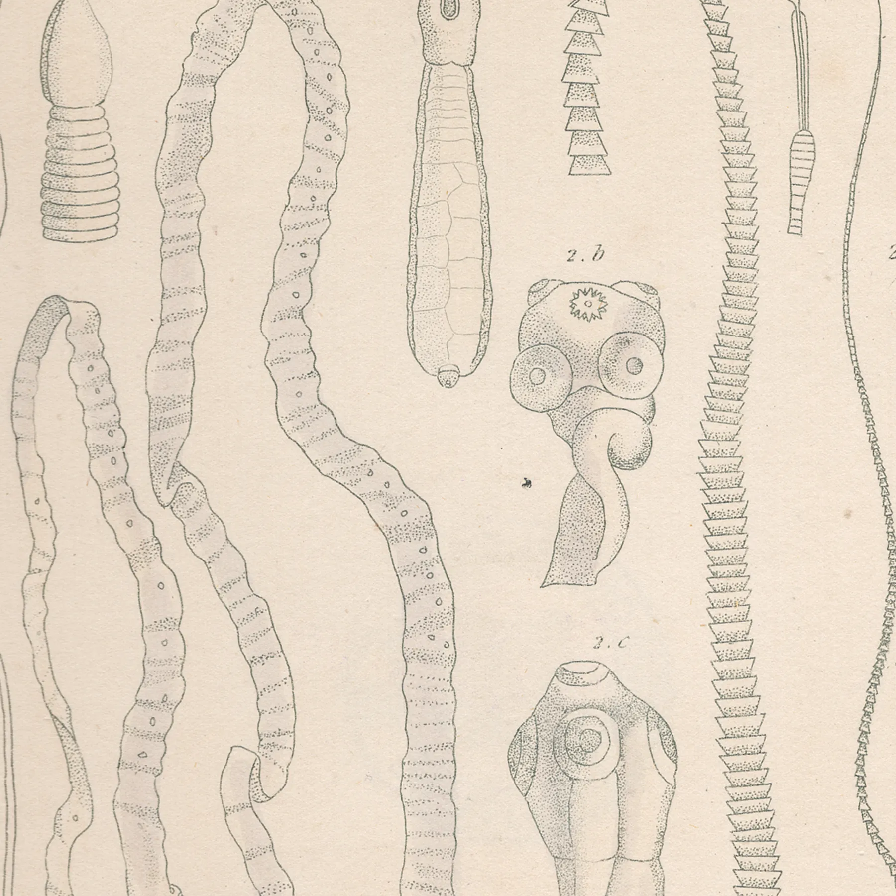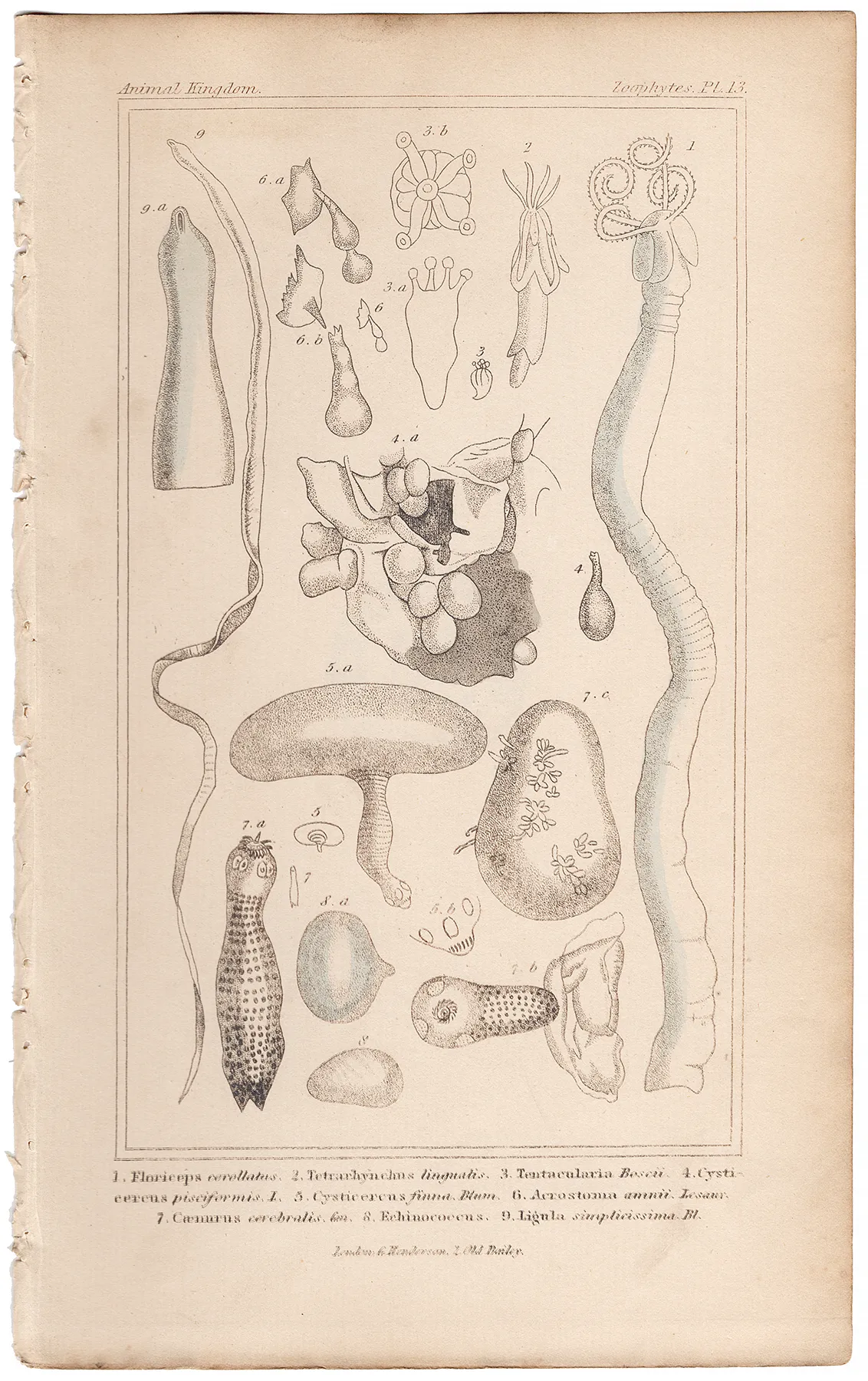 • Cuvier Animal Kingdom Zoophytes  Plate 13 Parasitic Tapeworm
