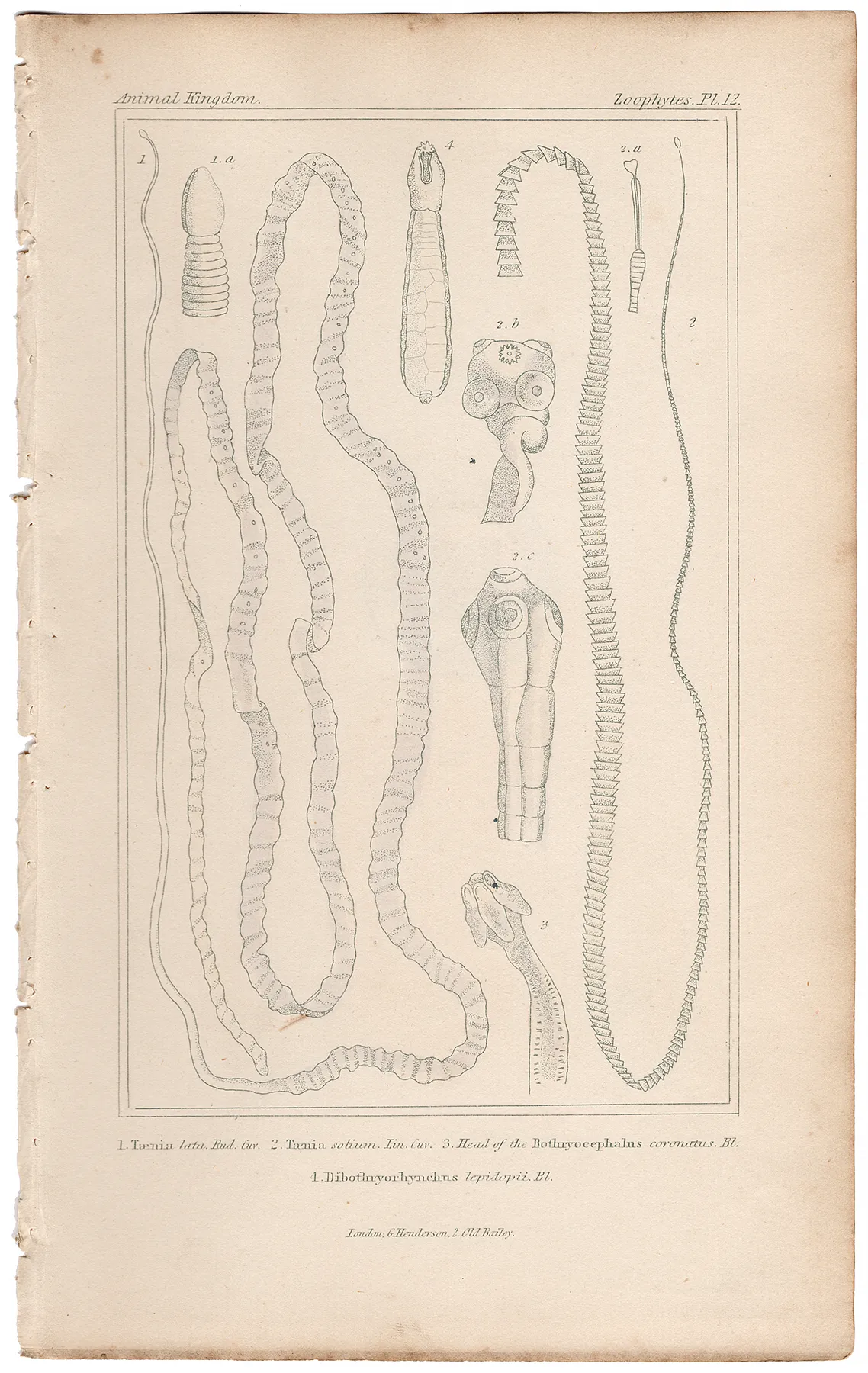 • Cuvier Animal Kingdom Zoophytes  Plate 12 Broad Fish Tapeworm